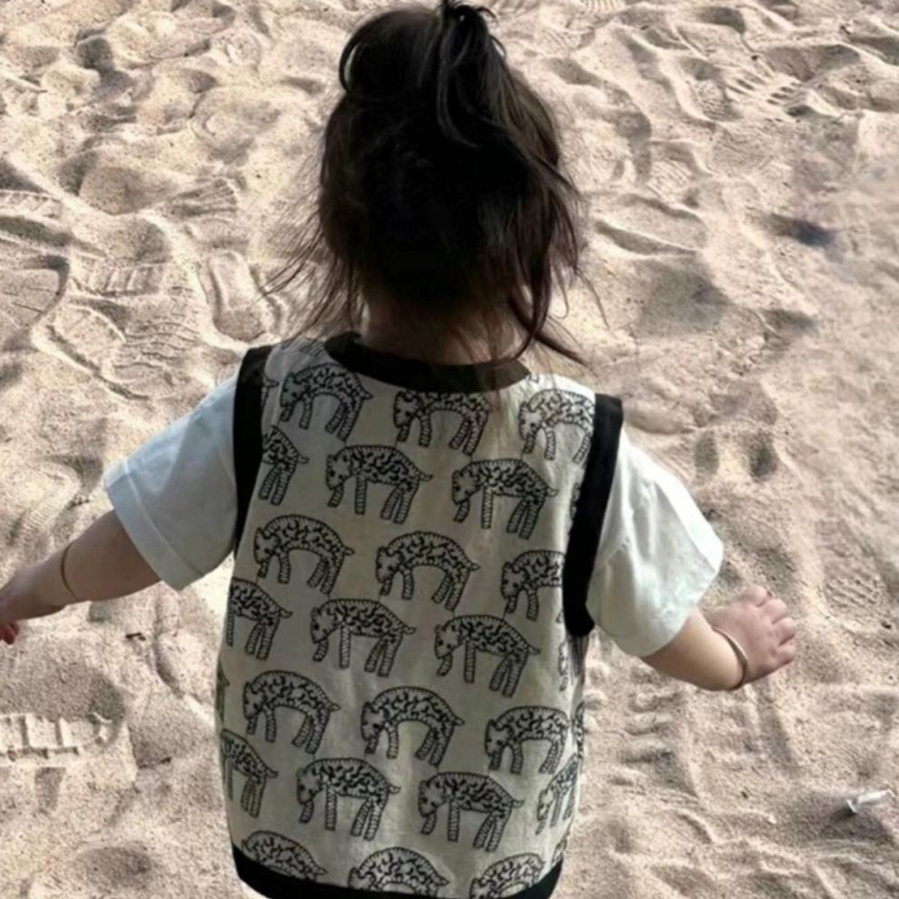 한국 어린이 남녀공용 프린트 조끼 새로운 2025 봄 여름 새로운 스타일 조끼 소년 소녀 외투