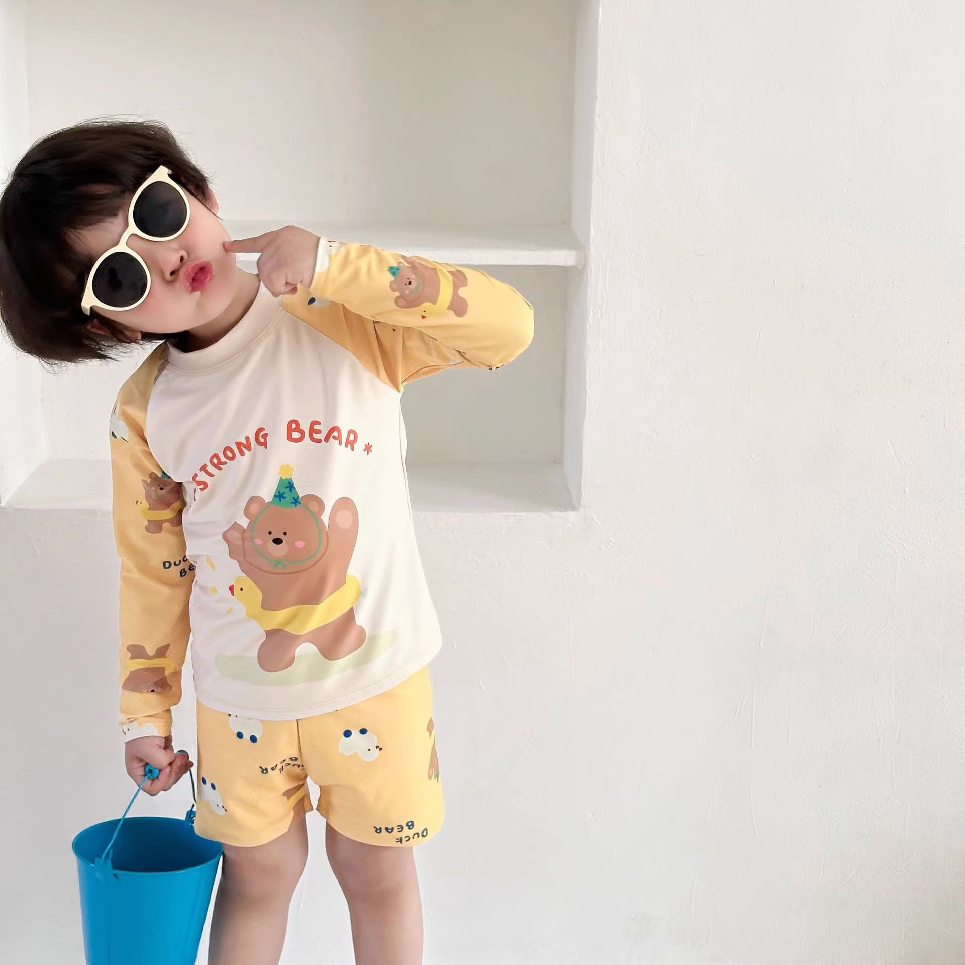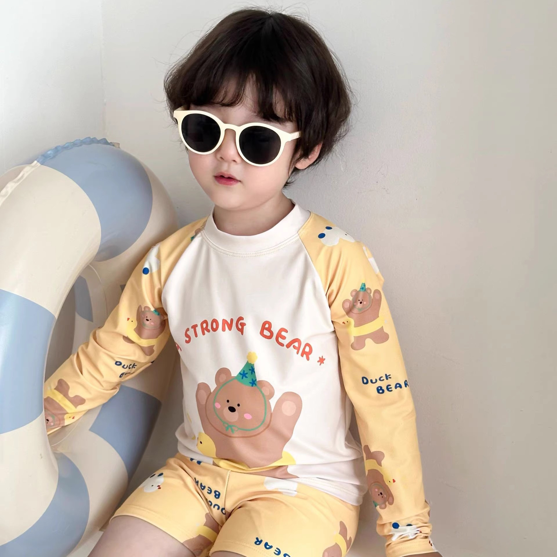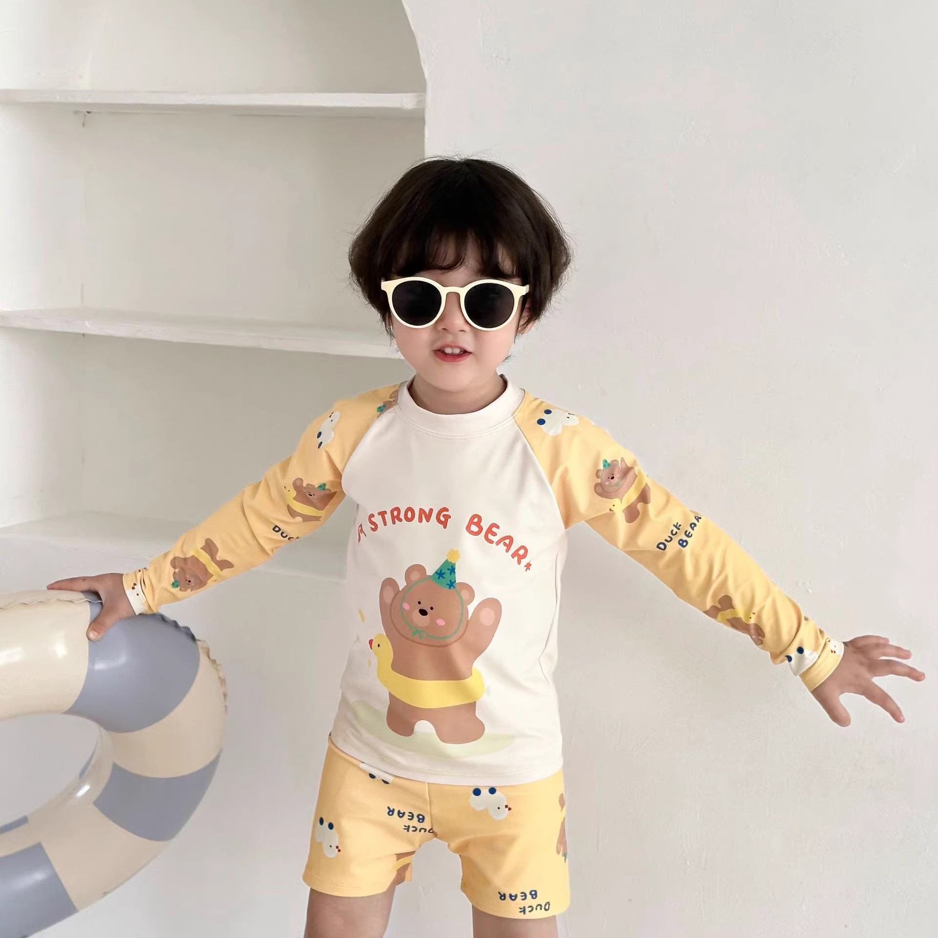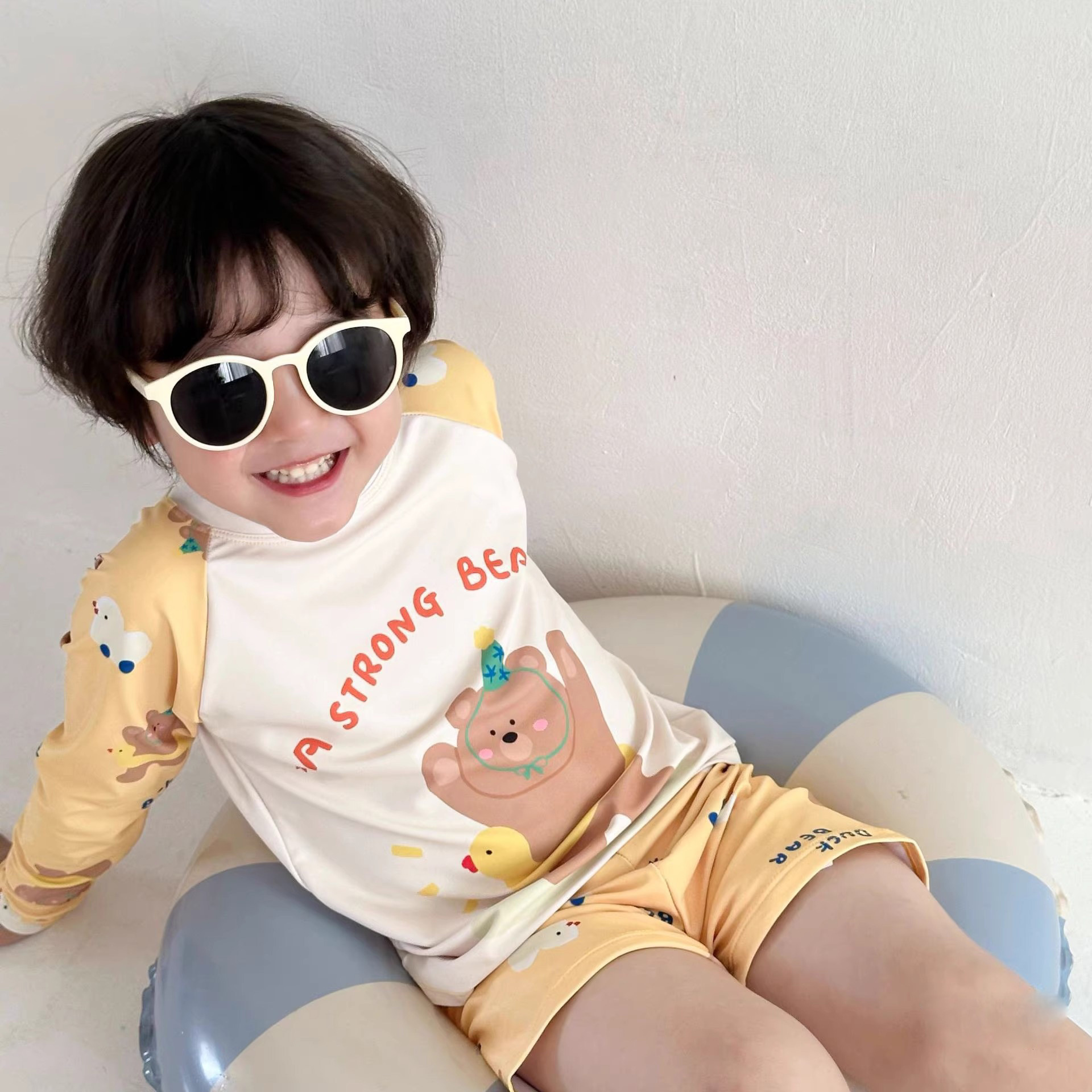 어린이 수영복 소년 2025 새로운 스플릿 긴팔 자외선 차단제 만화 어린이 소년 해변 아기 수영복