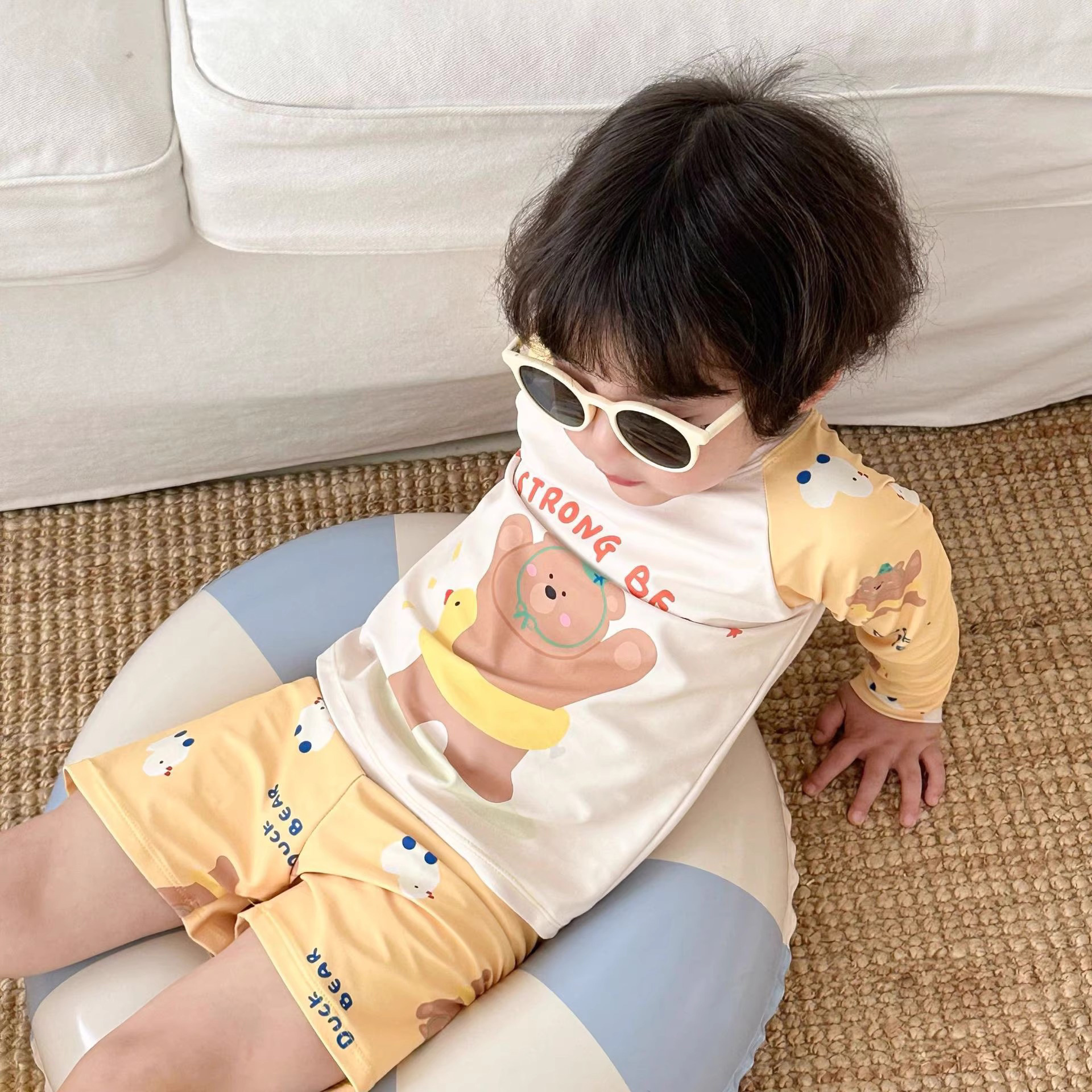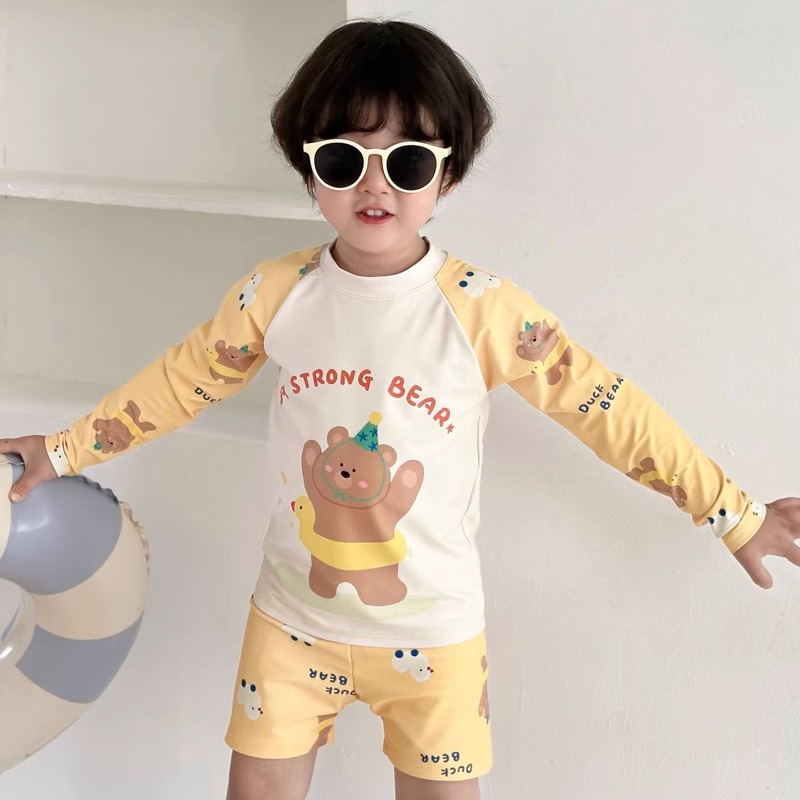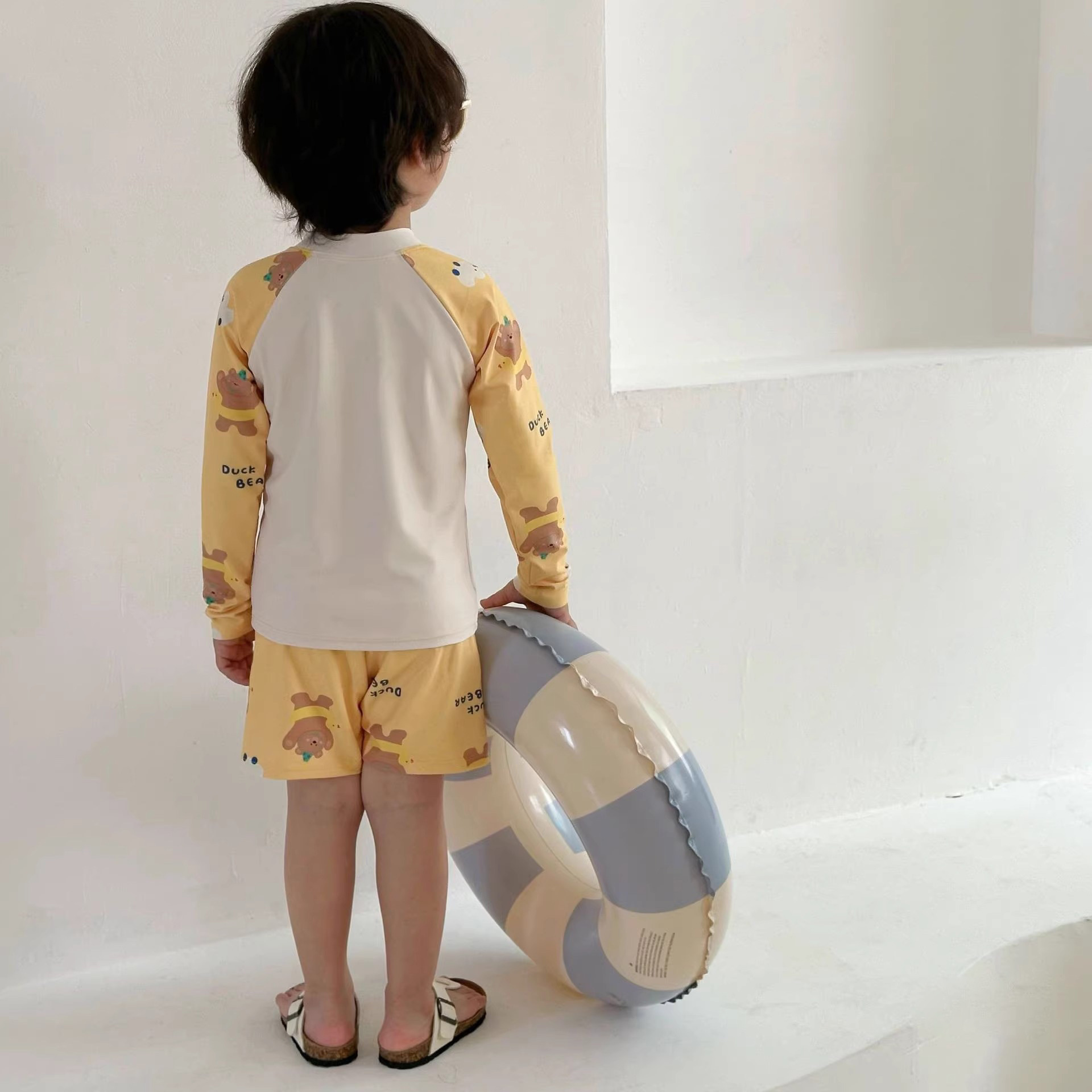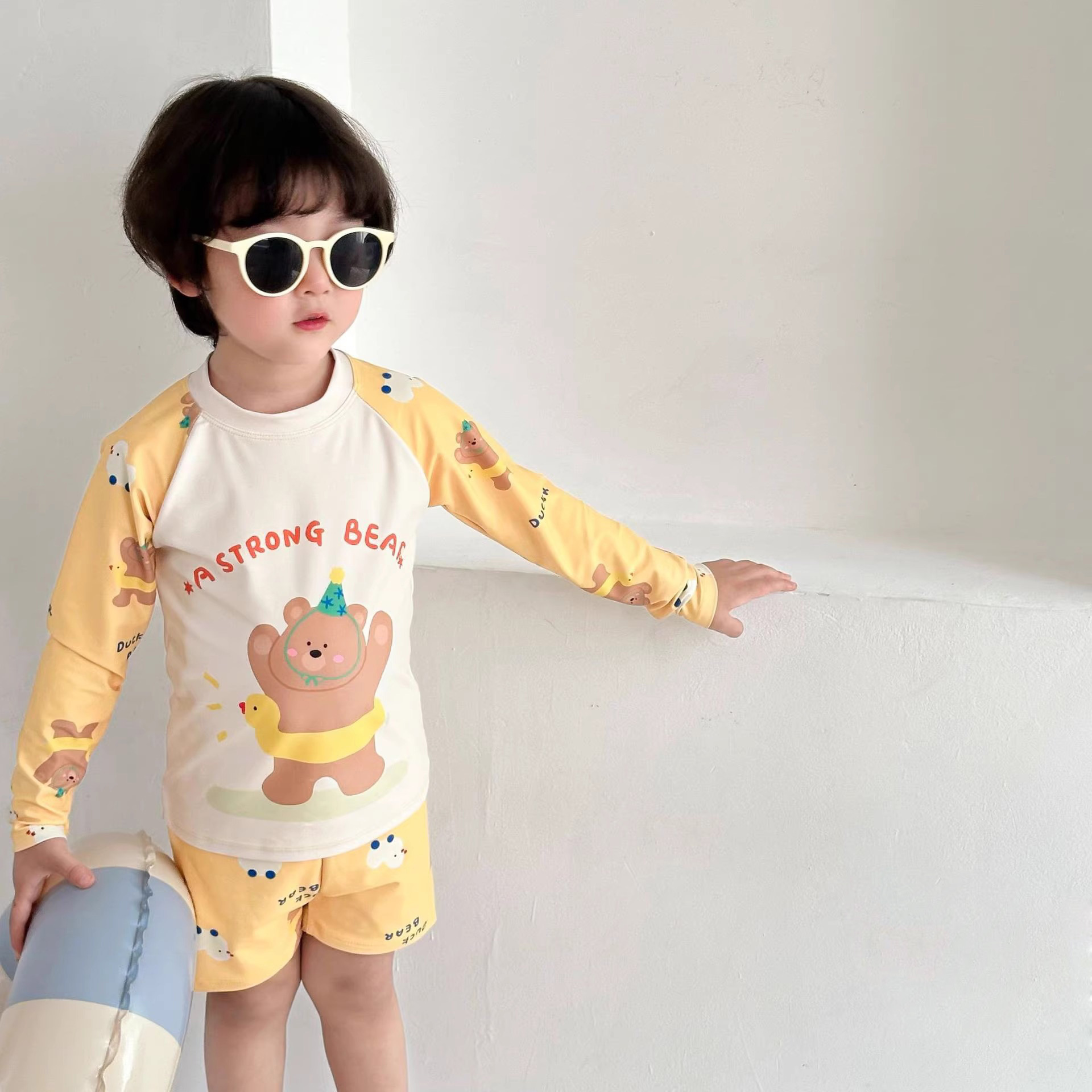 어린이 수영복 소년 2025 새로운 스플릿 긴팔 자외선 차단제 만화 어린이 소년 해변 아기 수영복