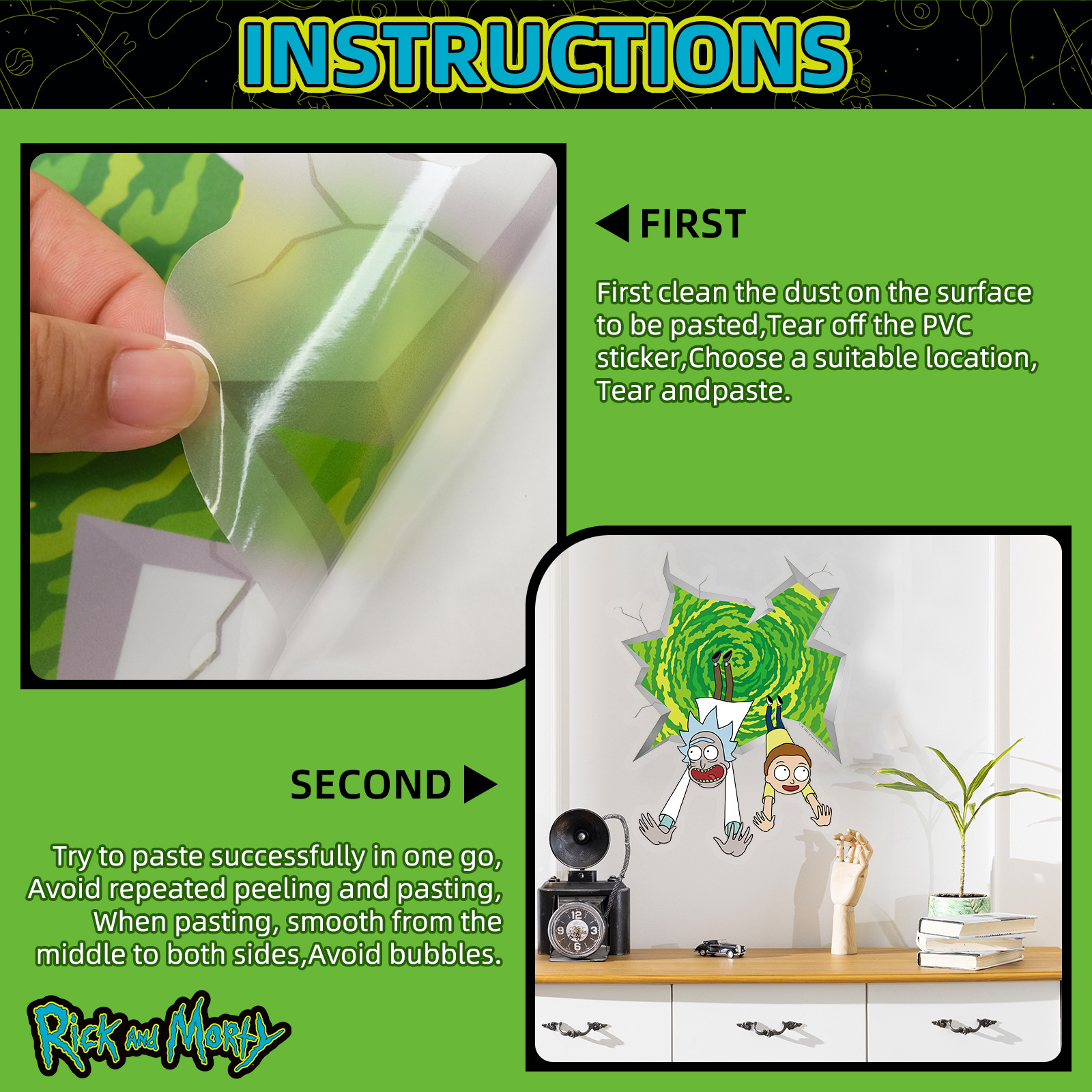 미국, 동남아시아, 캐나다 정품 인증 릭 앤 모티 벽 장식 스티커 만화 맞춤형 룸 스티커스토어 가기