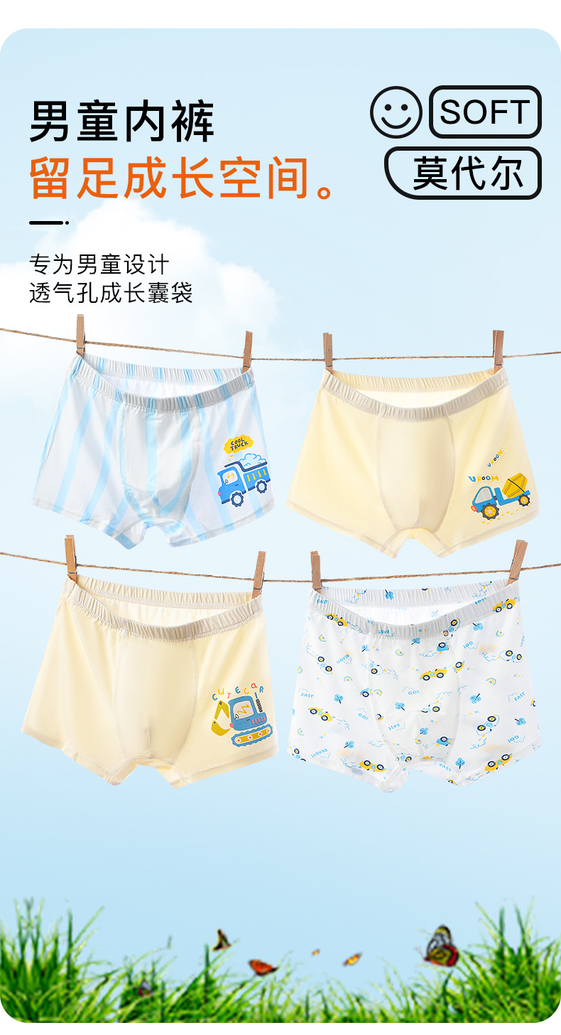 남아용 모달 복서 팬티, 아동용 사각 남아용 반바지, 중대형 아동용, 소형 남아용 아이스 실크 여름 얇은 스타일스토어 가기