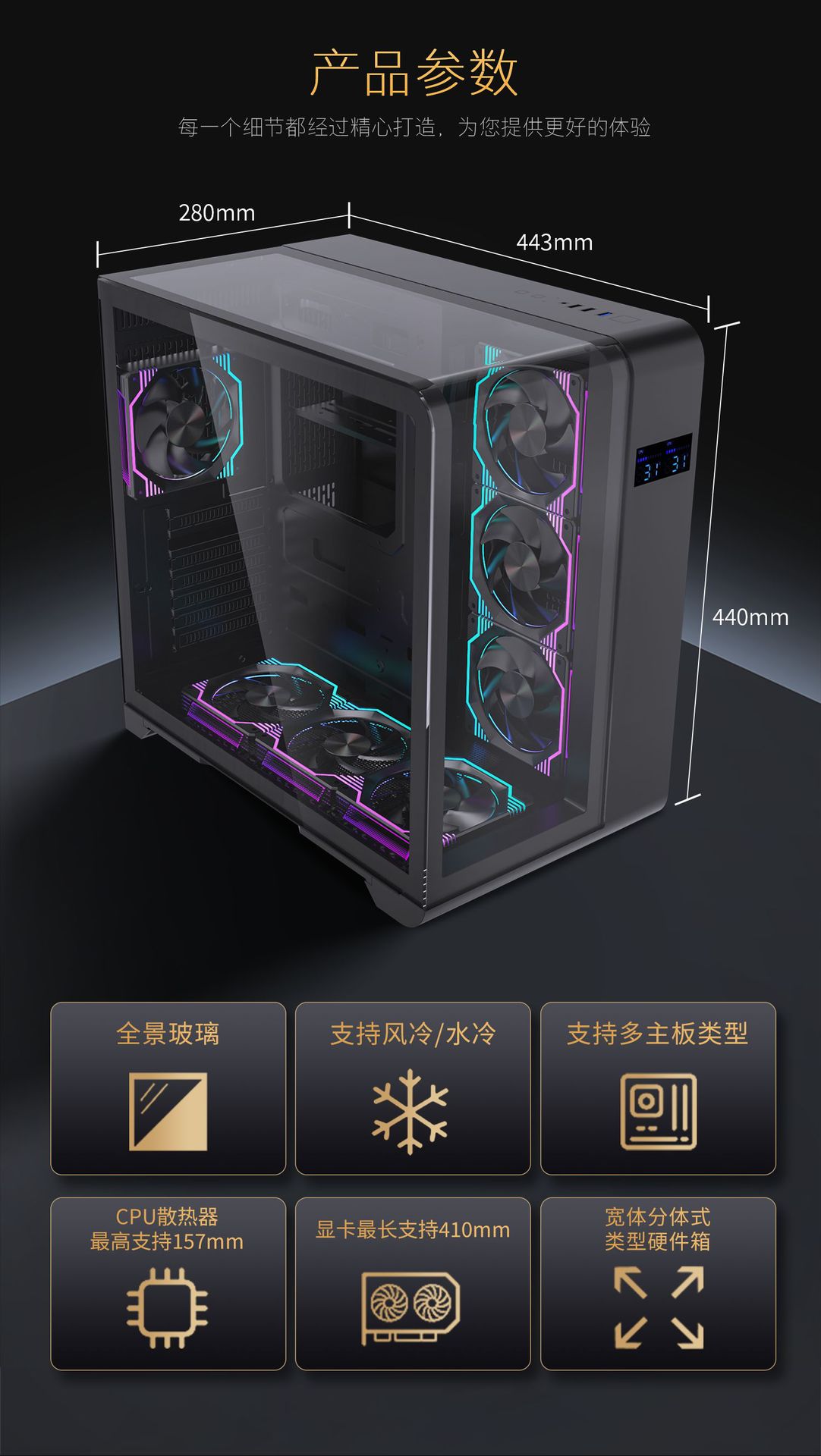 문톈 ATX 바다 전망룸 케이스 강화 유리 온도 표시 곡면 스크린 유리 데스크탑 컴퓨터 M-ATX 데스크탑 케이스스토어 가기
