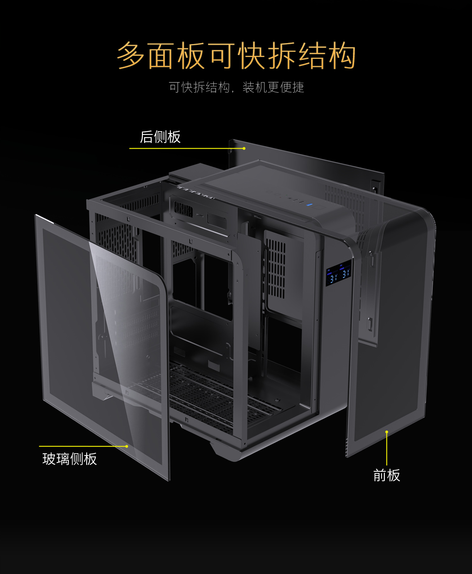 문톈 ATX 바다 전망룸 케이스 강화 유리 온도 표시 곡면 스크린 유리 데스크탑 컴퓨터 M-ATX 데스크탑 케이스