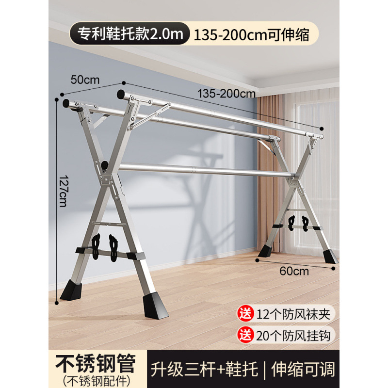 접이식 옷 건조대 바닥 실내 홈 발코니 침실 스테인레스 스틸 야외 텔레스코픽 옷 건조대 이불 건조