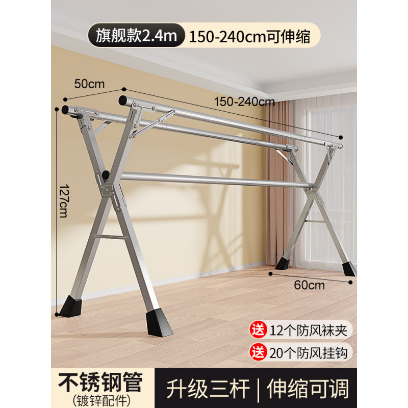 접이식 옷 건조대 바닥 실내 홈 발코니 침실 스테인레스 스틸 야외 텔레스코픽 옷 건조대 이불 건조스토어 가기