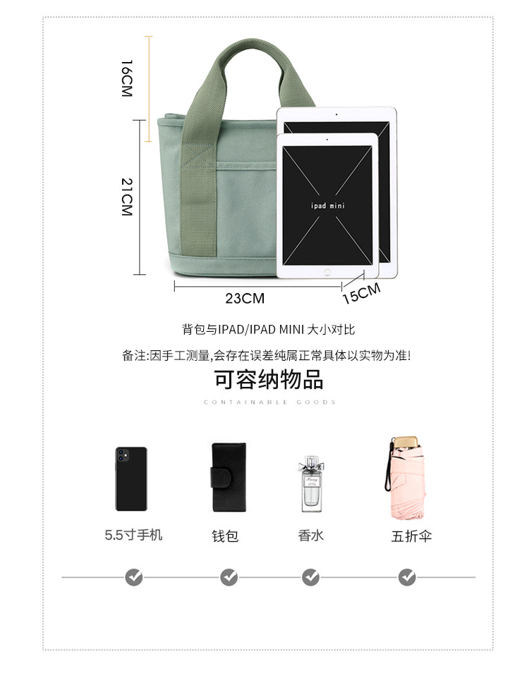 지퍼가 달린 작은 가방 일본식 밀레 레이어 백 틈새 시장 심플 숄더백 휴대용 두꺼운 캔버스 휴대폰 버킷 토트백