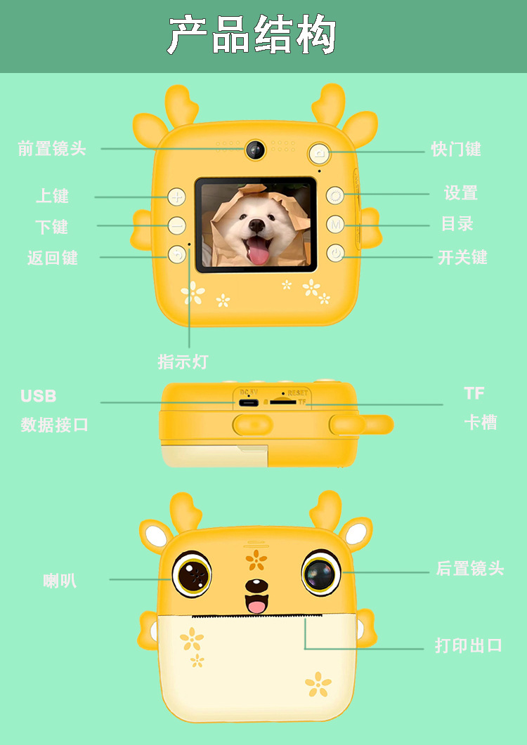 국경 간 새로운 어린이 폴라로이드 디지털 카메라 미니 만화 학생 고화질 사진 컬러 인쇄 카메라