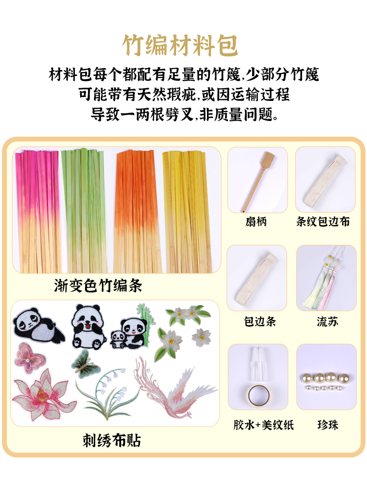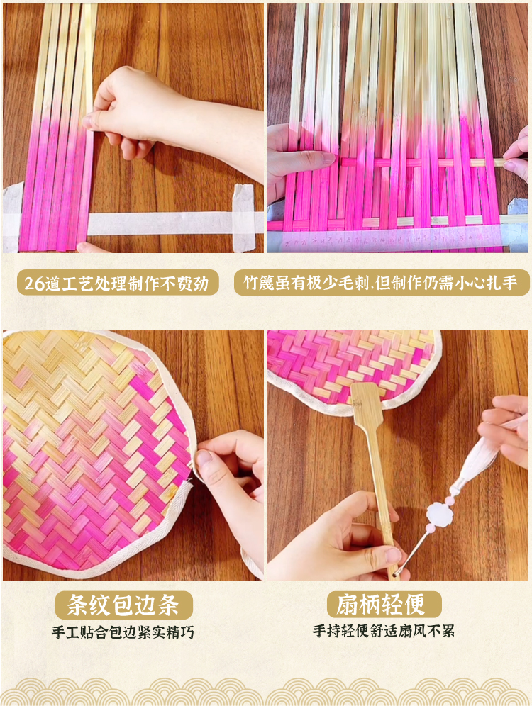Qingkai 38 대나무 부채 DIY 재료 패키지 단일 부채 무형 문화 유산 어린이 고대 스타일 그라데이션 색상 수제 워밍업스토어 가기