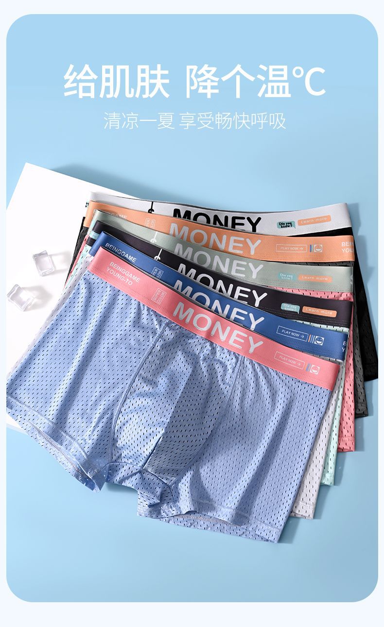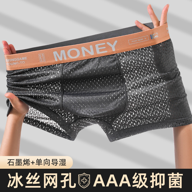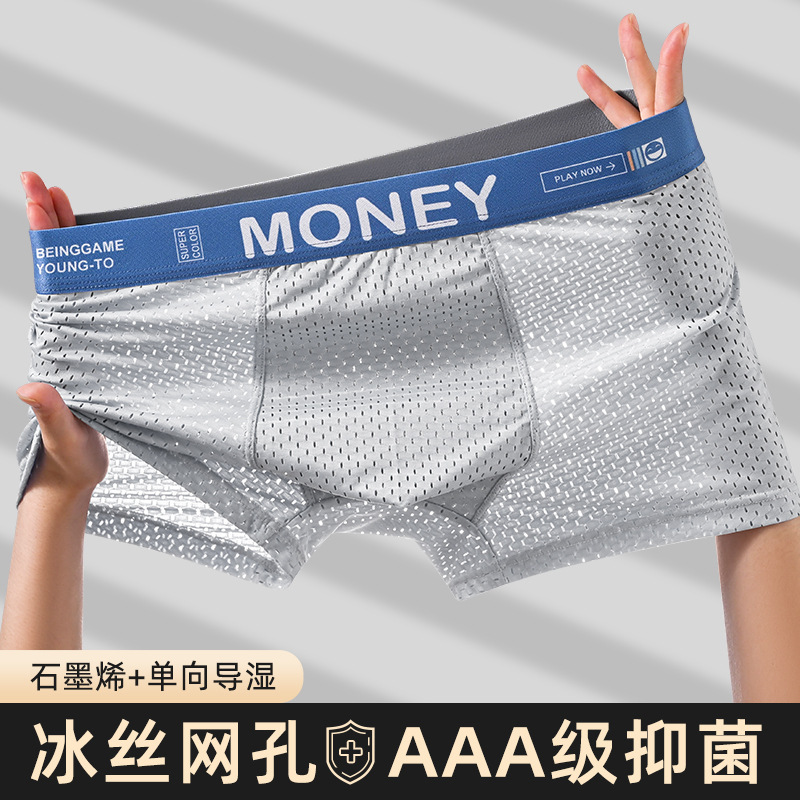 새로운 남성 속옷 얼음 실크 메쉬 통기성, 편안하고 항균 바닥 여름 스포츠 대형 루즈 복서 팬티스토어 가기