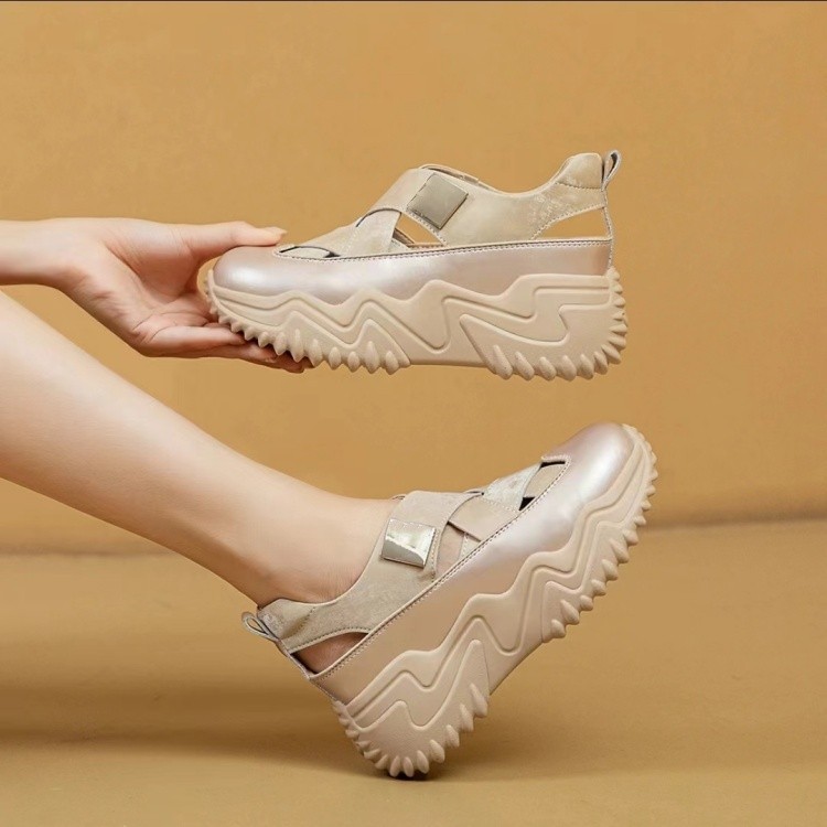 초두꺼운 밑창 슬립온 중공 발가락 샌들 2025 여름 신작 소프트 밑창 캐주얼 소형 통기성 아빠 신발스토어 가기