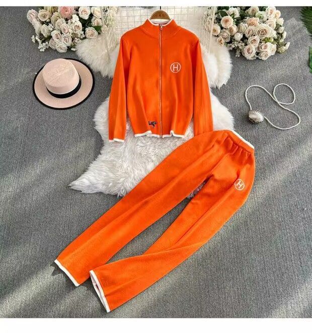 봄과 가을 새로운 지퍼 스웨터 카디건 코트 여성 자수 스웨터 긴팔 탑 투피스 세트 하이 웨이스트 와이드 레그 팬츠스토어 가기