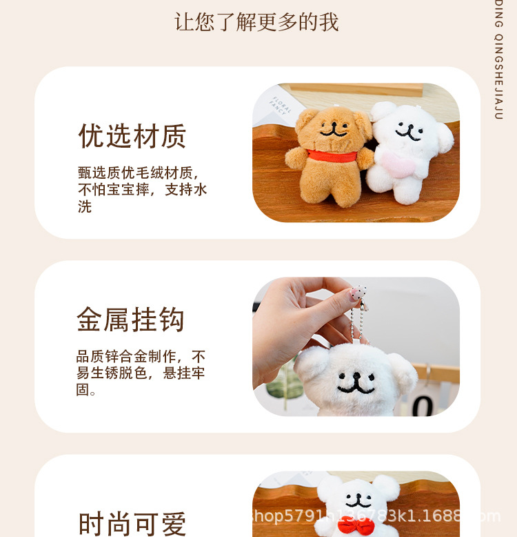 可爱线条小狗挂件毛绒玩具狗狗公仔钥匙扣软萌布娃娃生日礼品玩偶