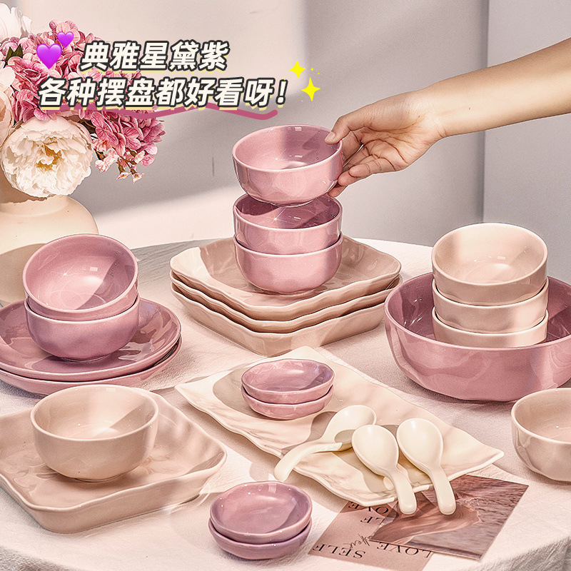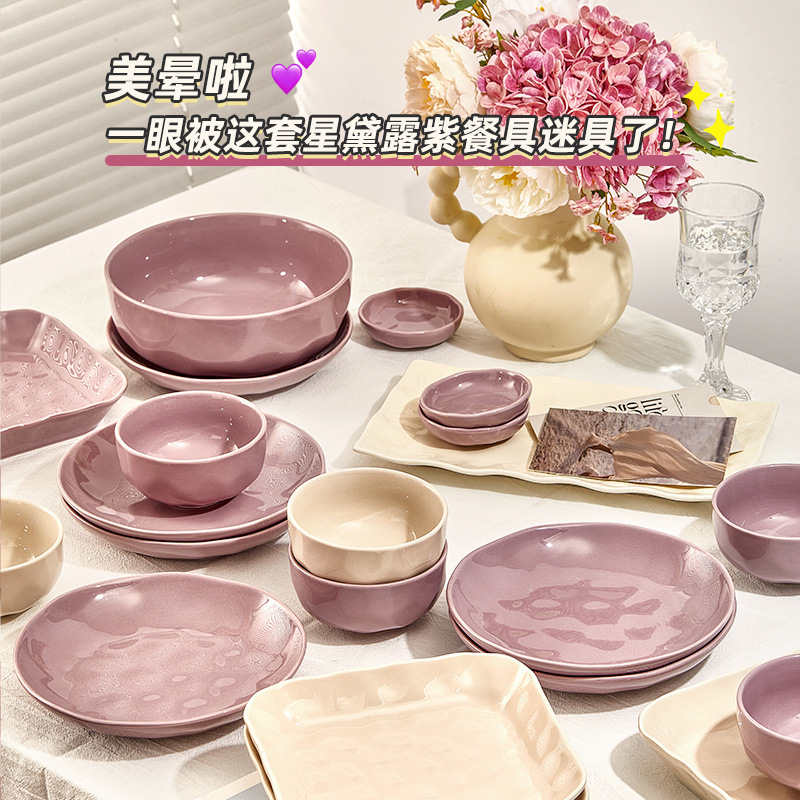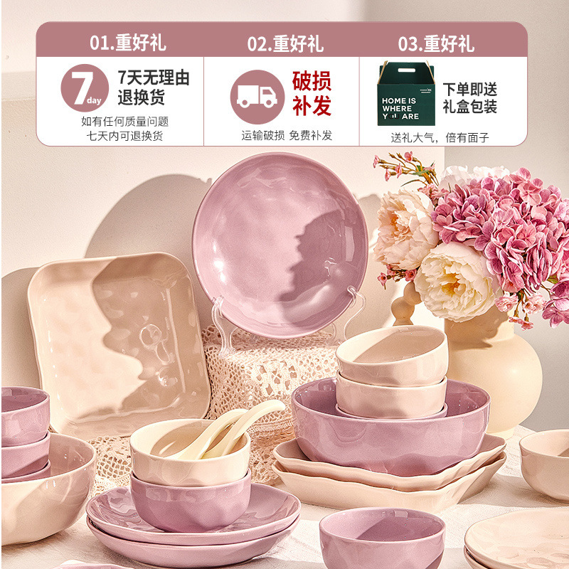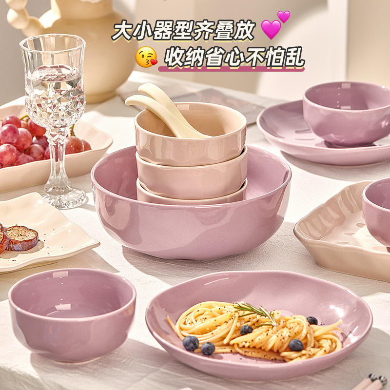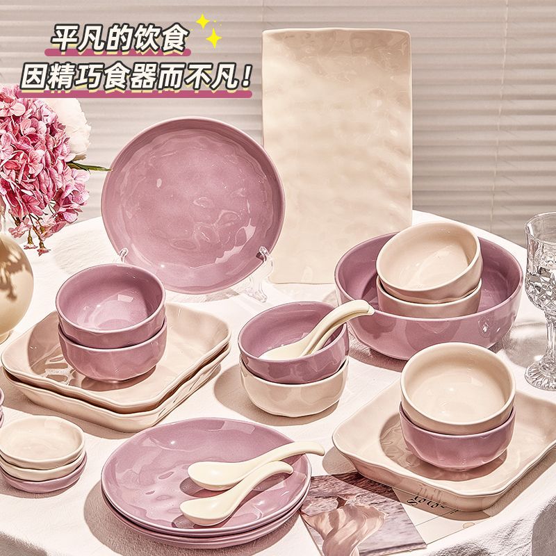 크림 스타일 접시 세트 가정용 2023 새로운 접시 가정용 조합 그릇과 젓가락 도파민 식기 세트스토어 가기