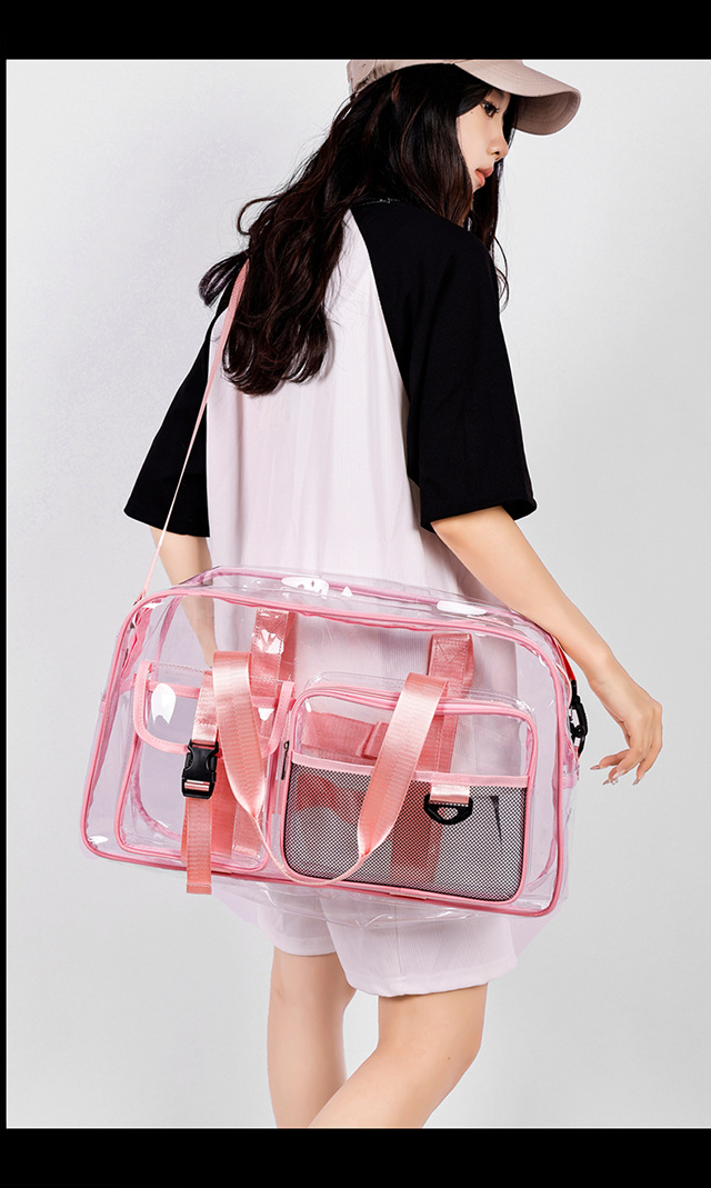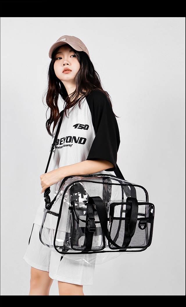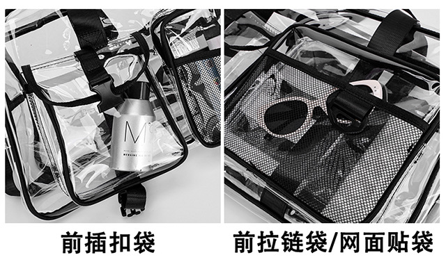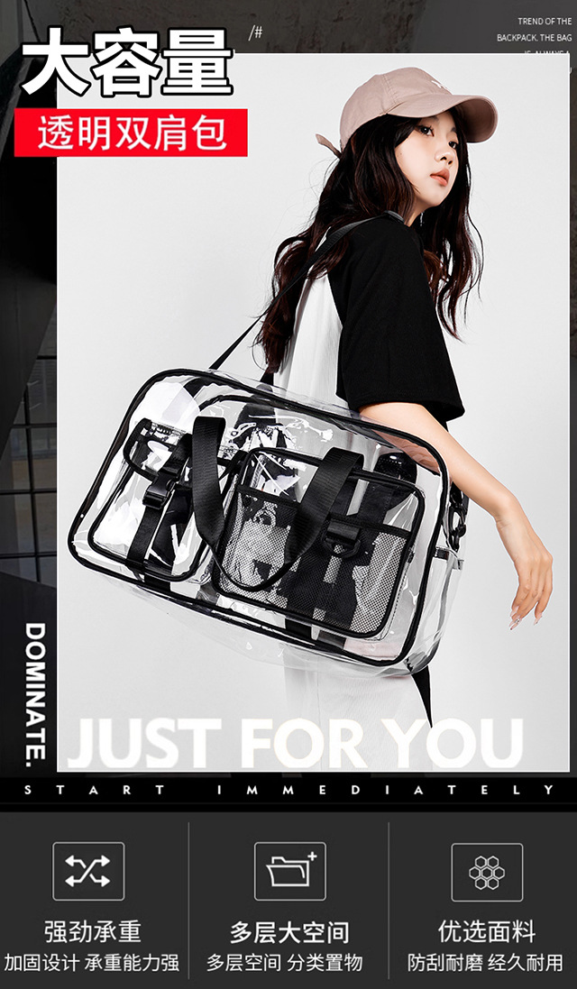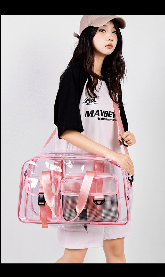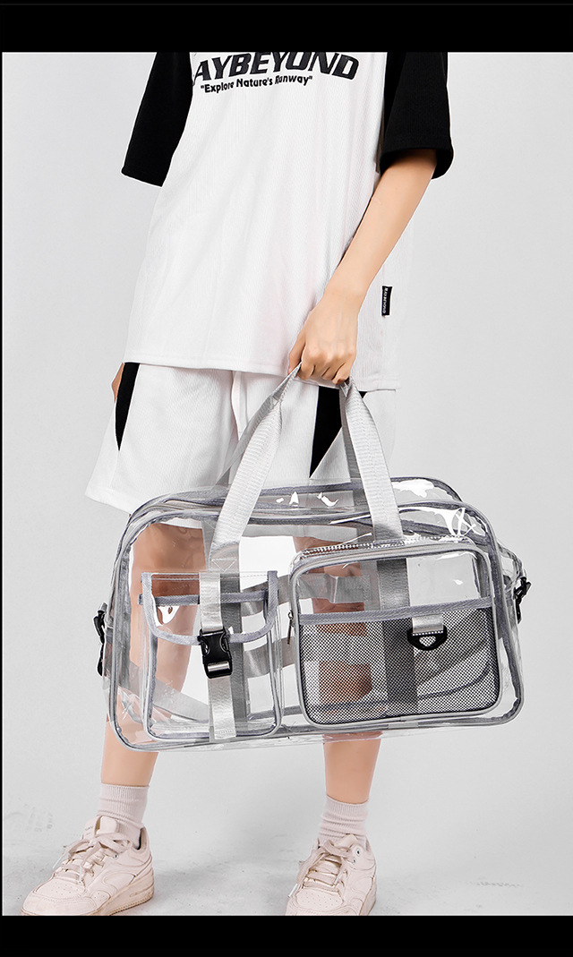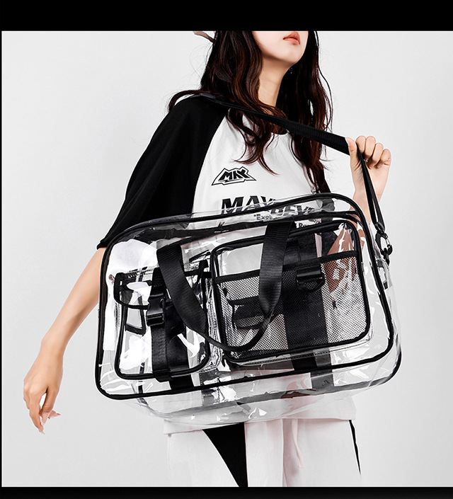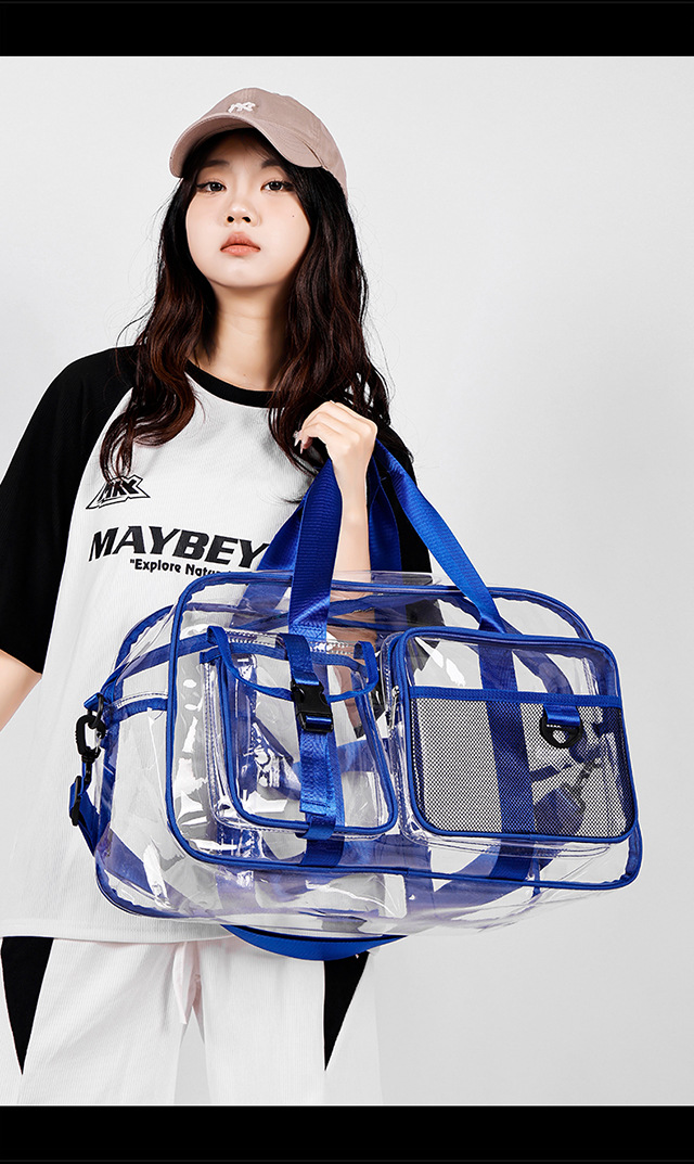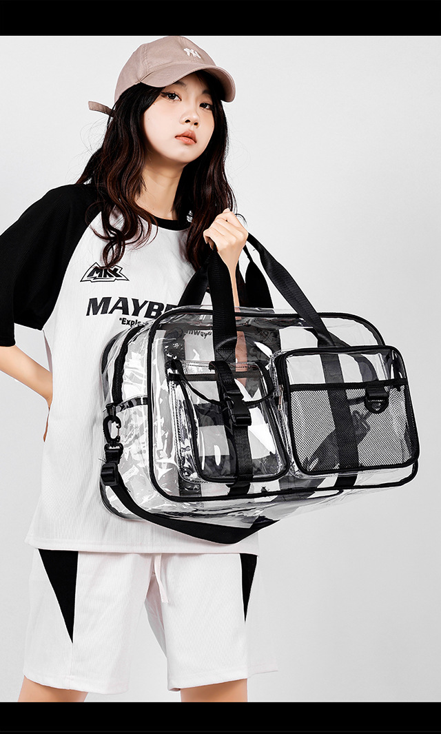 PVC 투명 여행 가방 여성용 2025 대용량 백팩 크로스바디 패션 개성 풀투명 방수 학생 가방스토어 가기