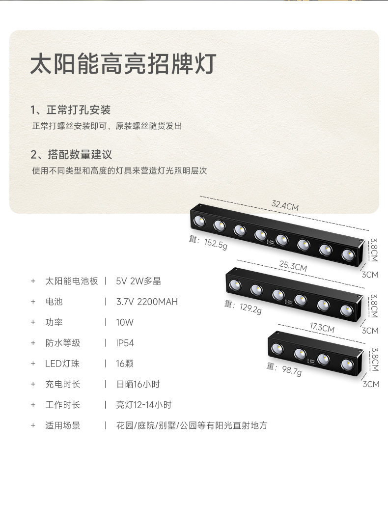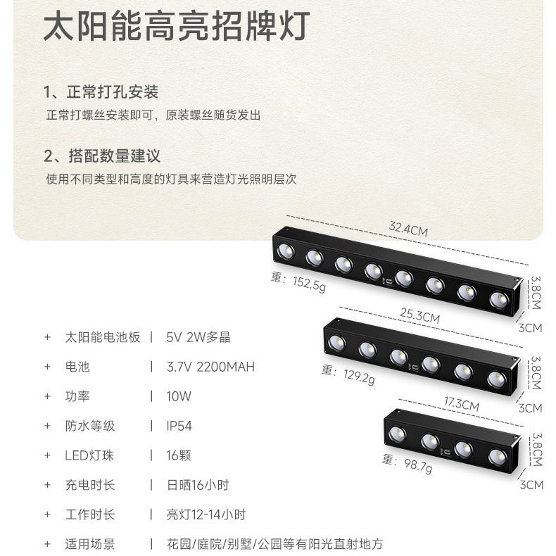 새로운 태양 조명 야외 정원 조명 색상 빛 따뜻한 빛 집 벽 램프 상점 간판 조명 분위기 벽 세척 램프 벨트
