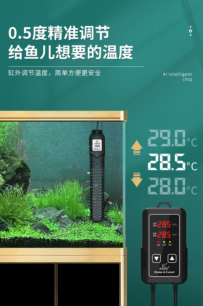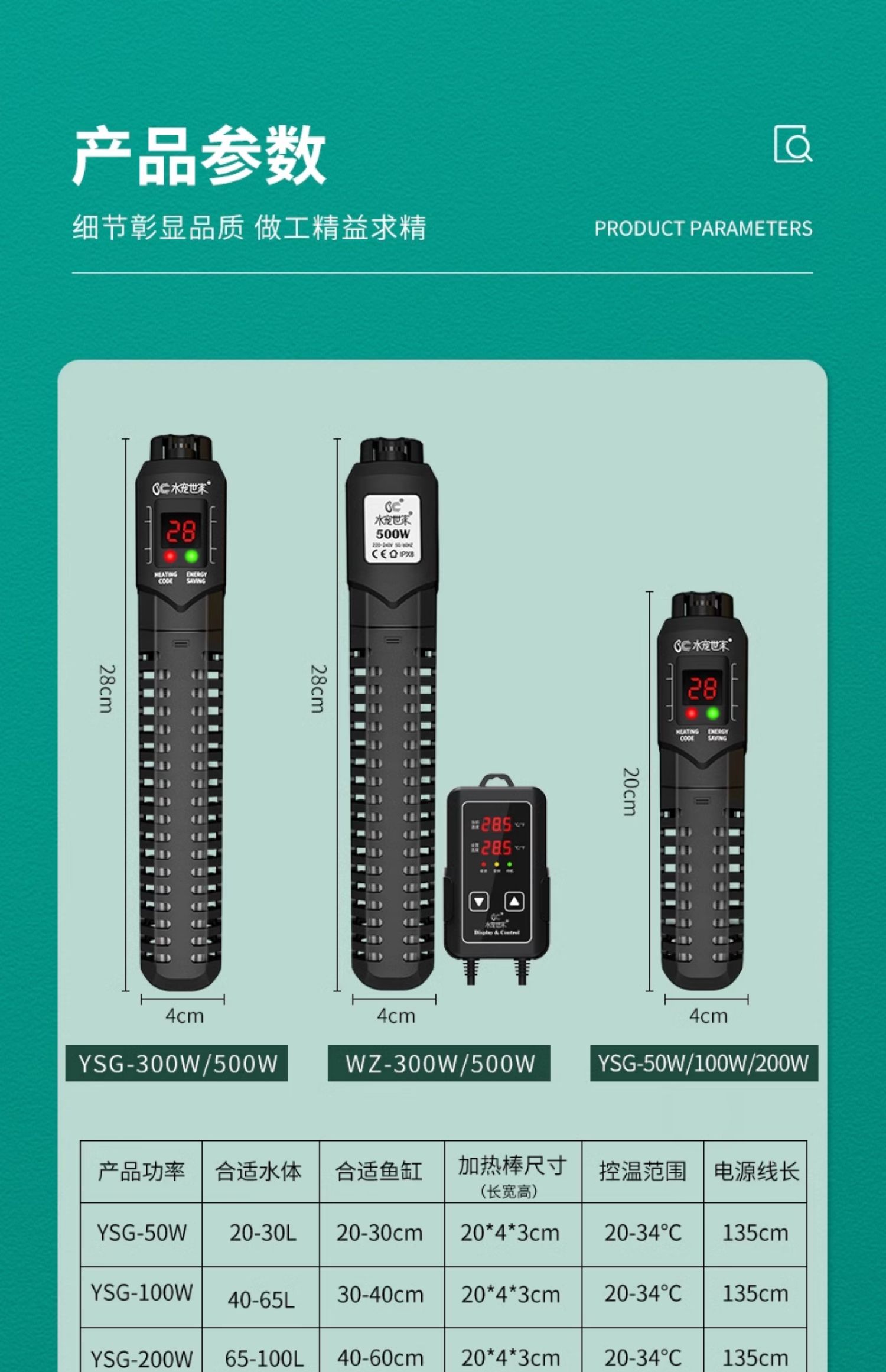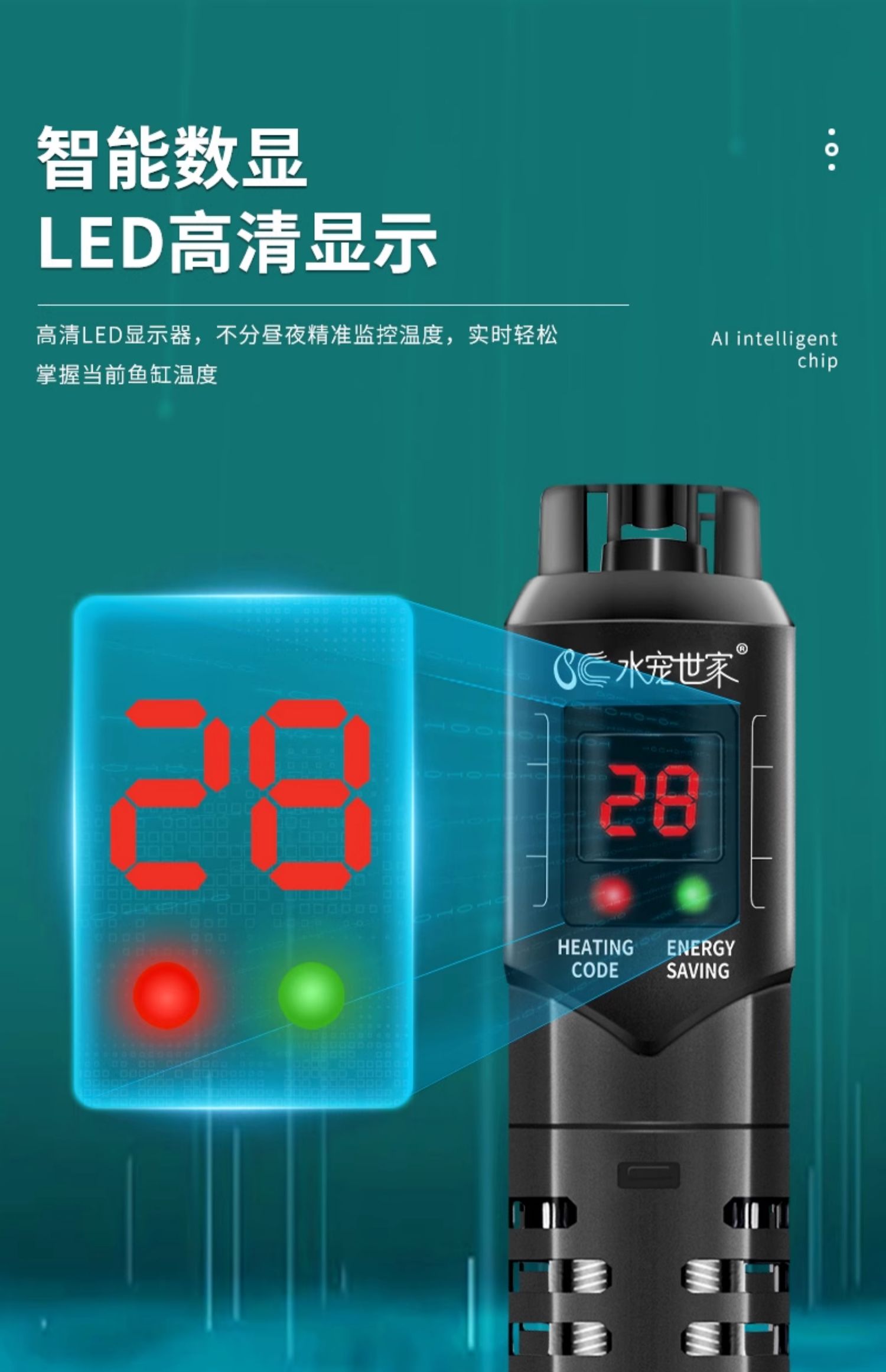 물 애완 동물 가족 물에서 떨어져 전원을 끄면 가열 막대 자동 일정한 온도 수조 가열 막대 주파수 변환 석영 방폭 유리