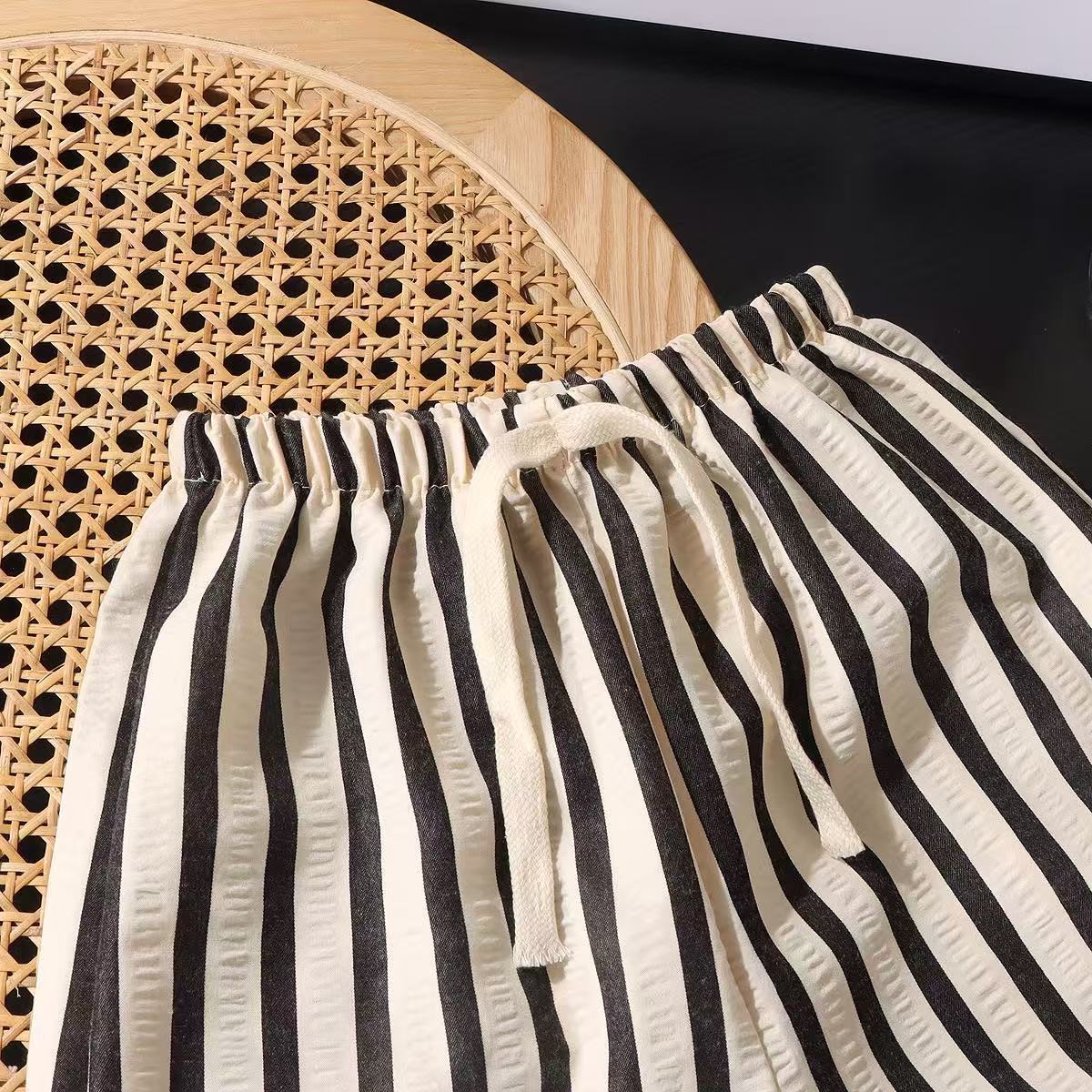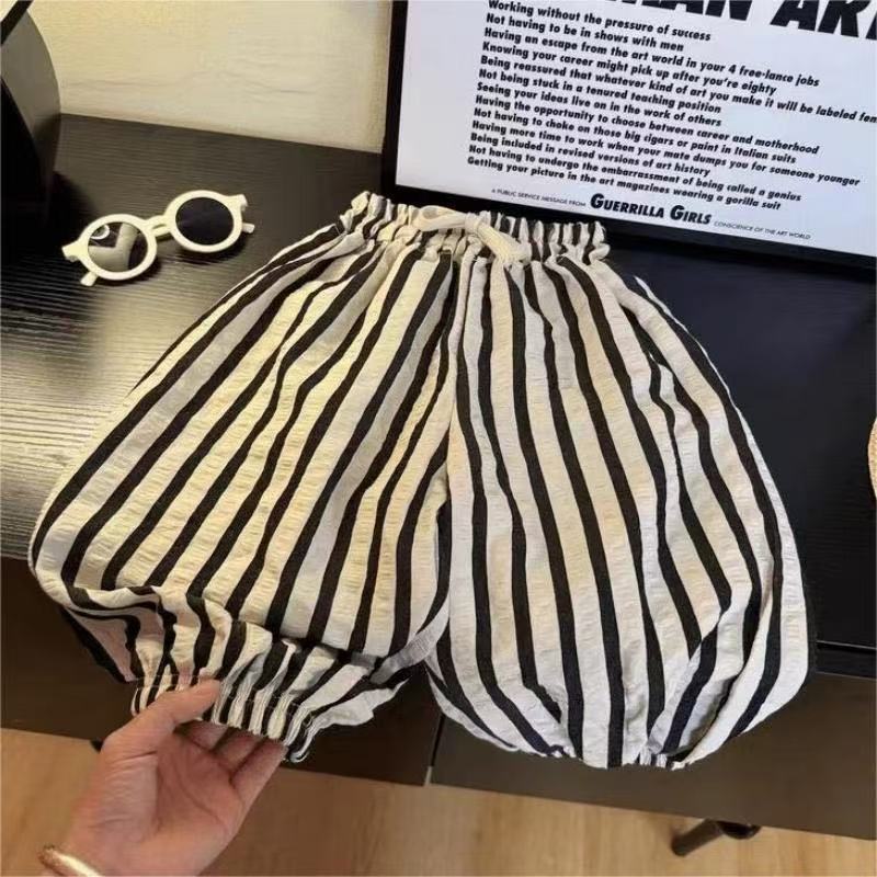 흑백 줄무늬 다용도 소년 소녀 캐주얼 바지 에어컨 바지 중소형 어린이 여름 아동복 줄무늬 바지 트렌디하고 통기성이 좋습니다.