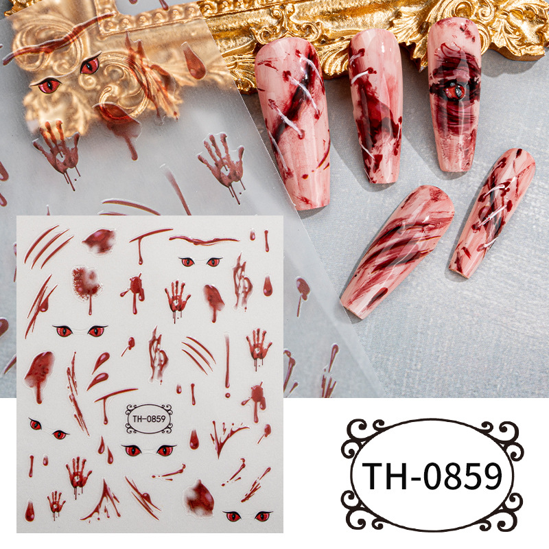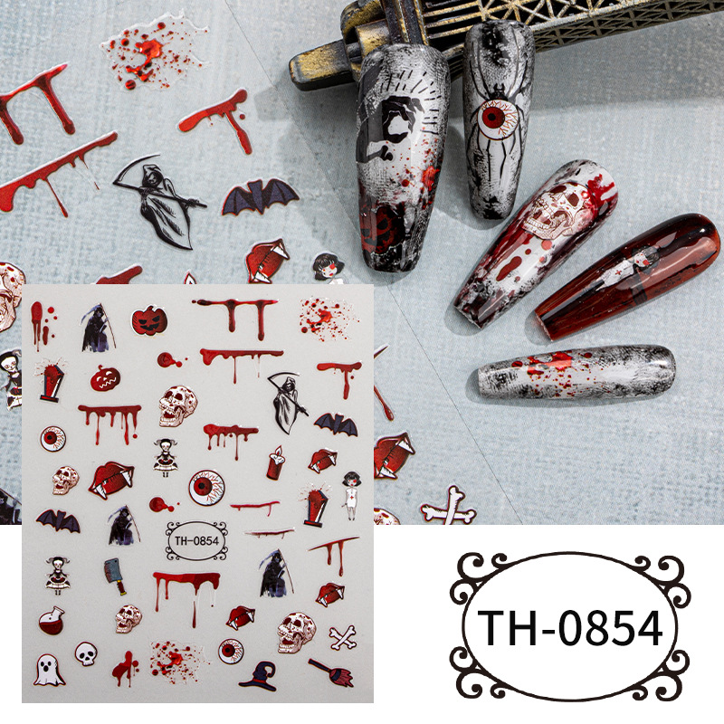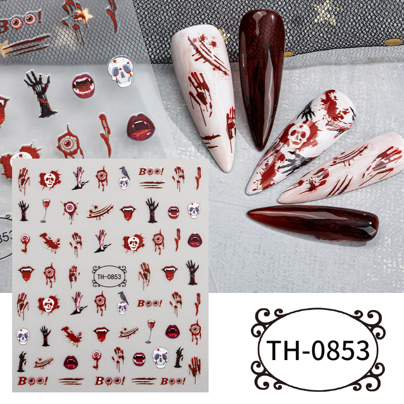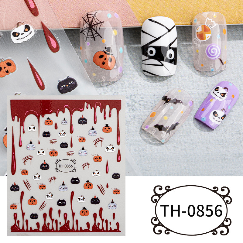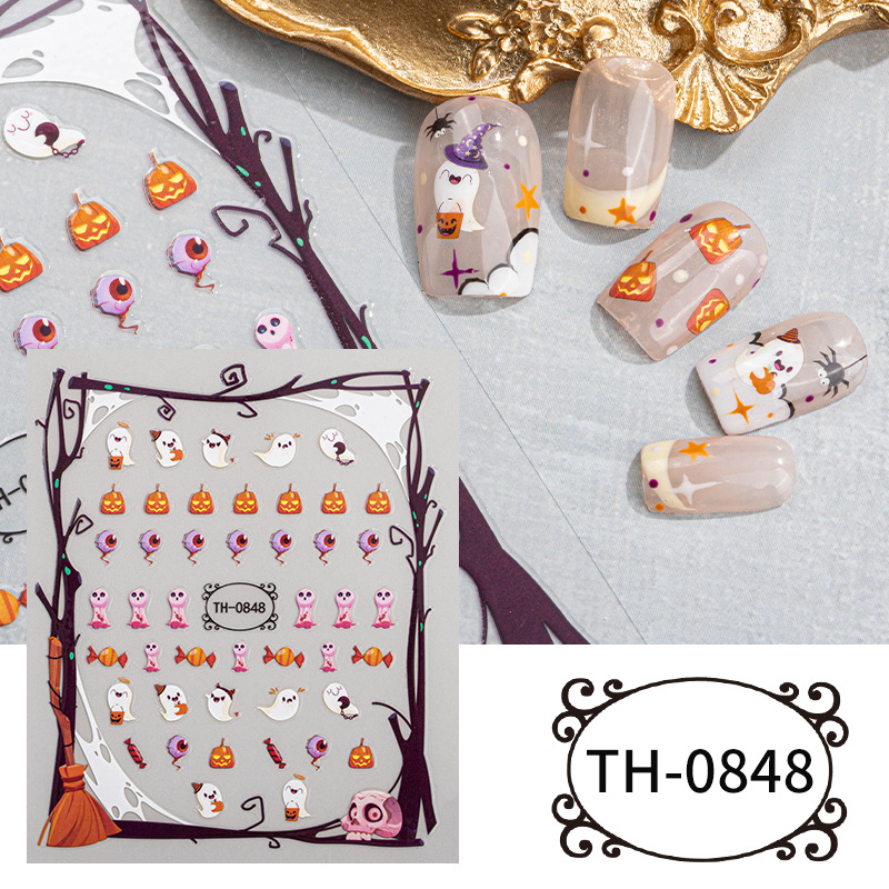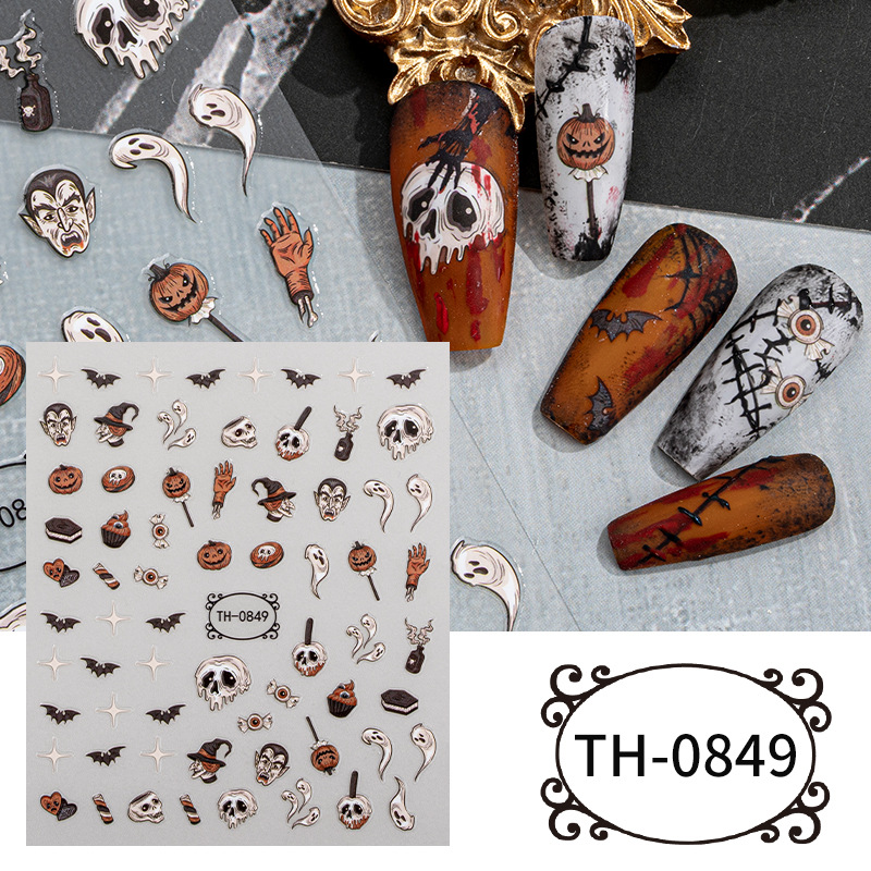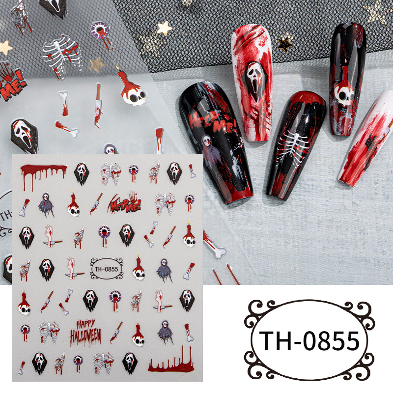 Zhengxiang 새로운 인터넷 연예인 세트 할로윈 네일 아트 스티커 DIY 크로스 보더 유령 해골 할로윈 네일 스티커 OEM스토어 가기