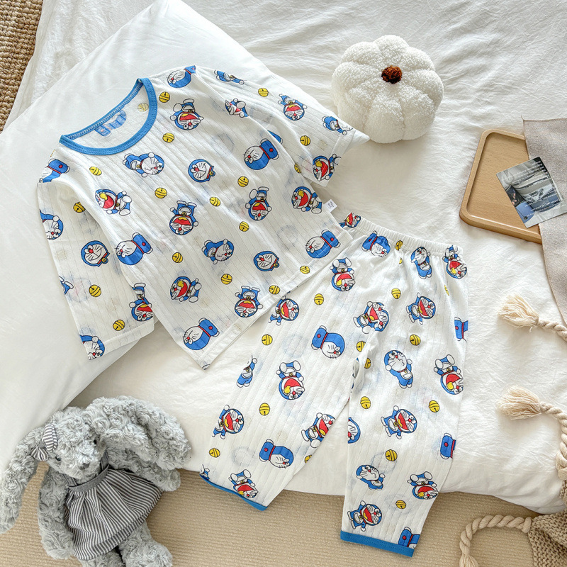 아동용 여름 면 얇은 가정복, 남아용 7부 소매 양복, 여아용 에어컨 양복