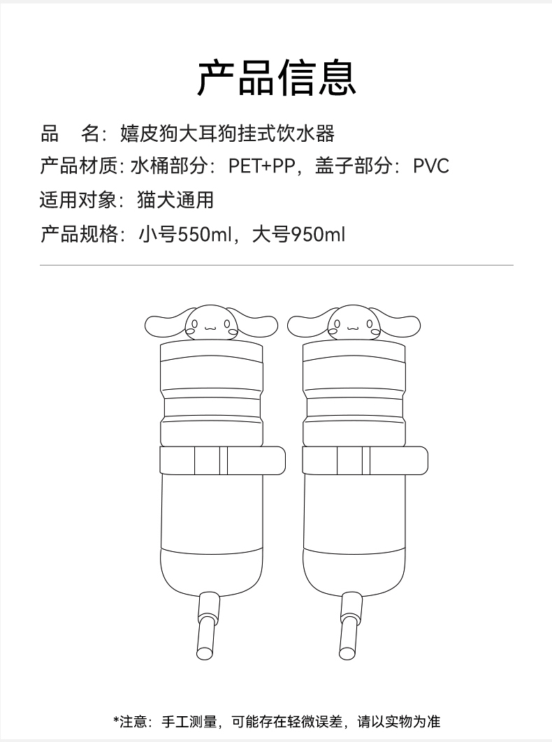 개 자동 식수 디스펜서 큰 귀 개 공동 교수형 식수 디스펜서 고양이 개는 입 공 마시는 그릇을 적시 지 않습니다스토어 가기