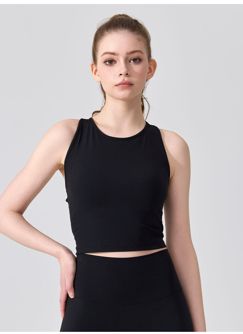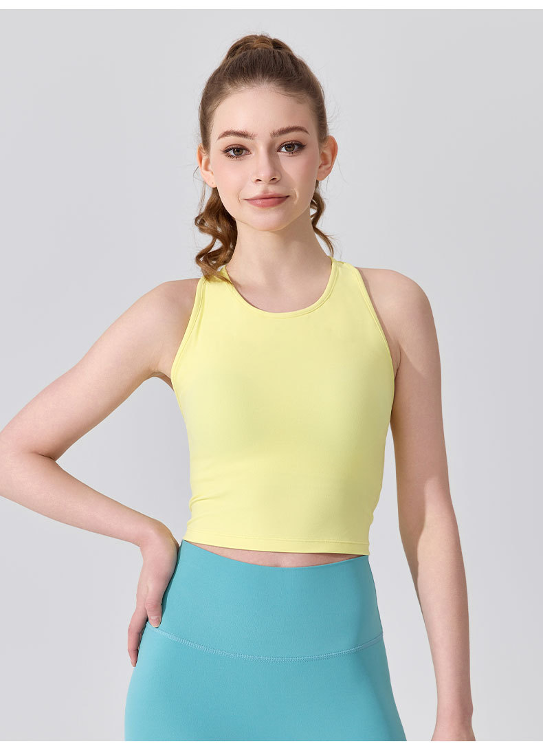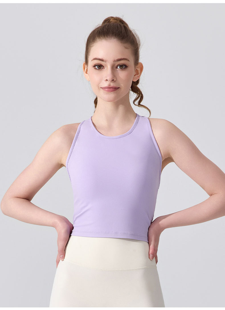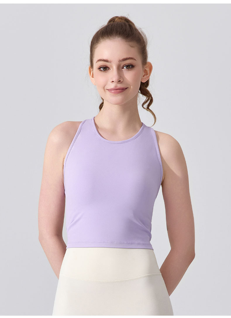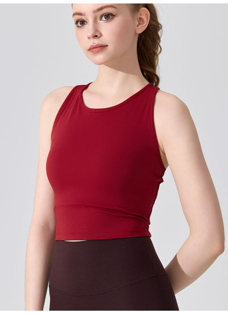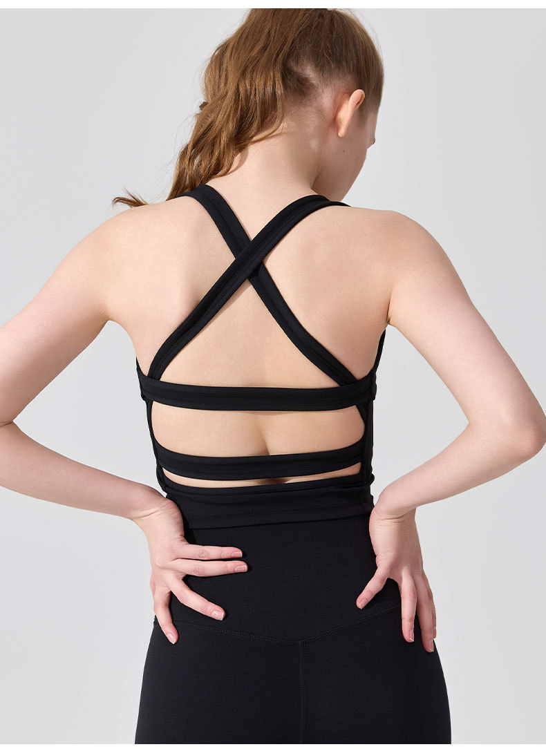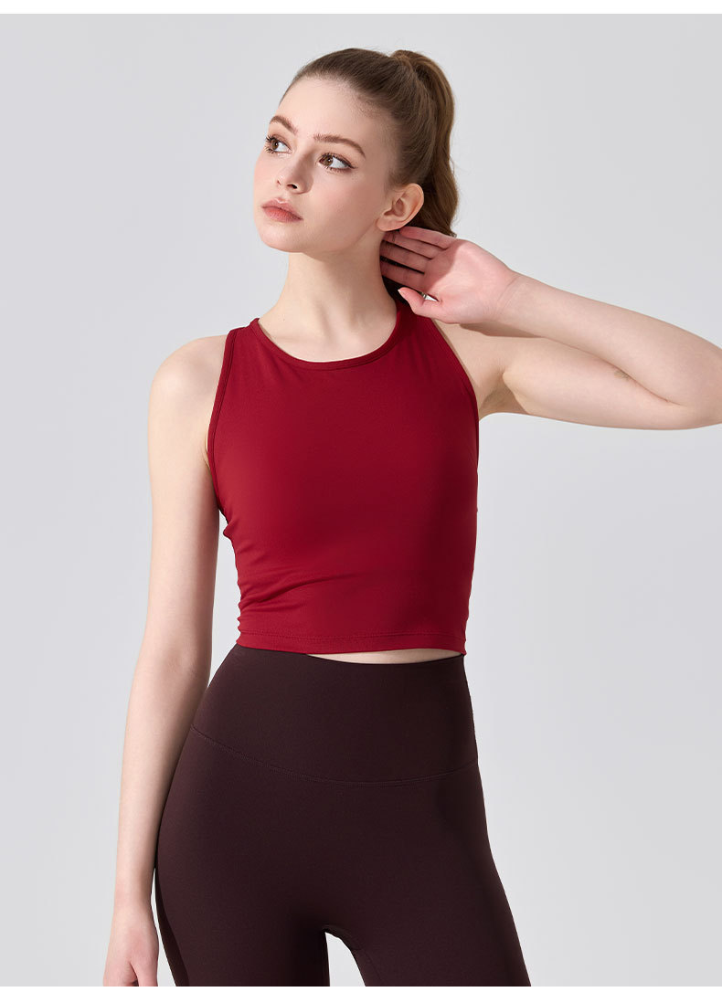 여성용 스몰 라운드 넥 크로스 백 요가 조끼, 고반발, 흡습성 및 통기성 겉옷, 다용도 스포츠 속옷