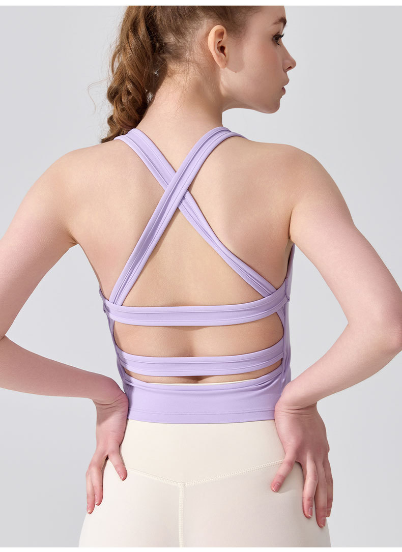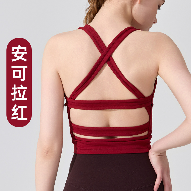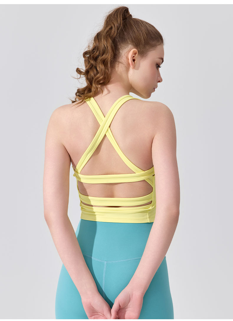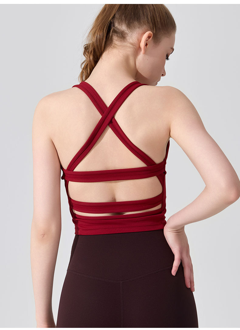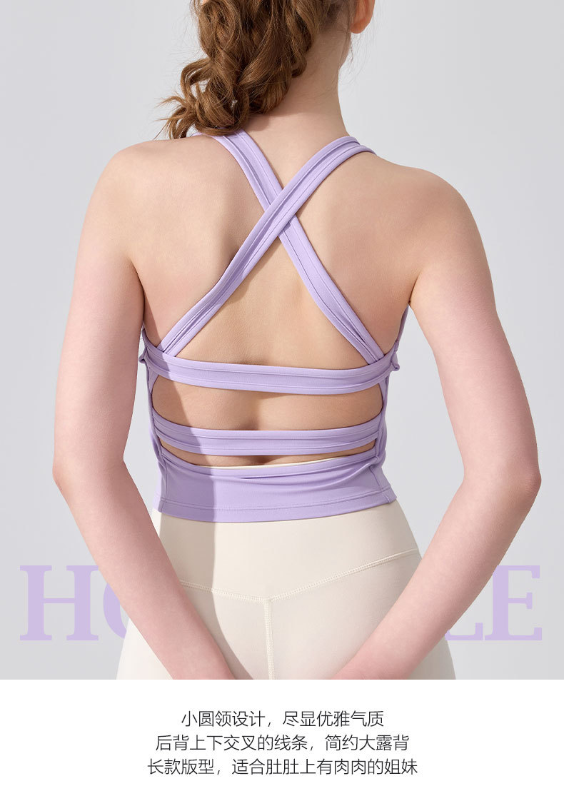 여성용 스몰 라운드 넥 크로스 백 요가 조끼, 고반발, 흡습성 및 통기성 겉옷, 다용도 스포츠 속옷스토어 가기