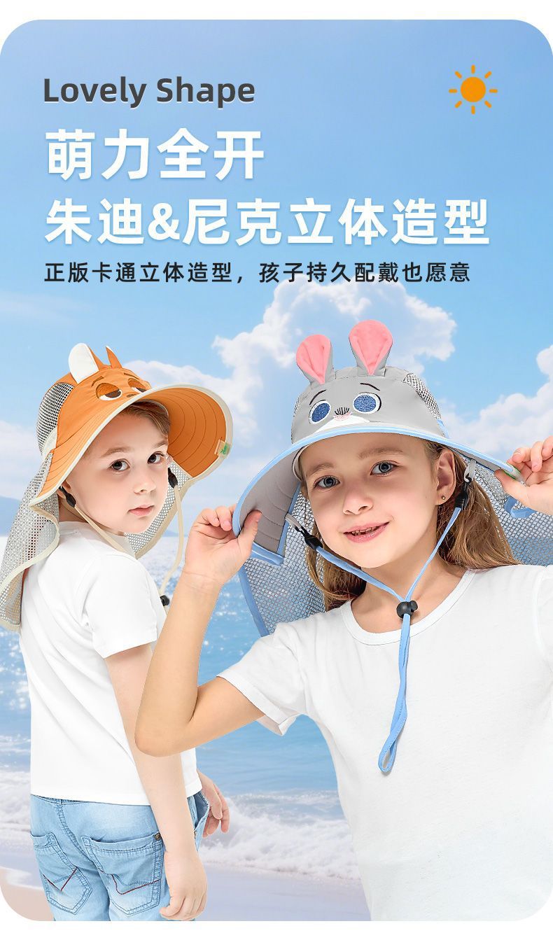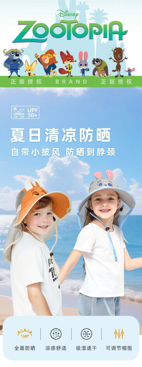 디즈니 여름 Zootopia 어린이 자외선 방지 대형 챙 태양 모자 소년 소녀 모자스토어 가기