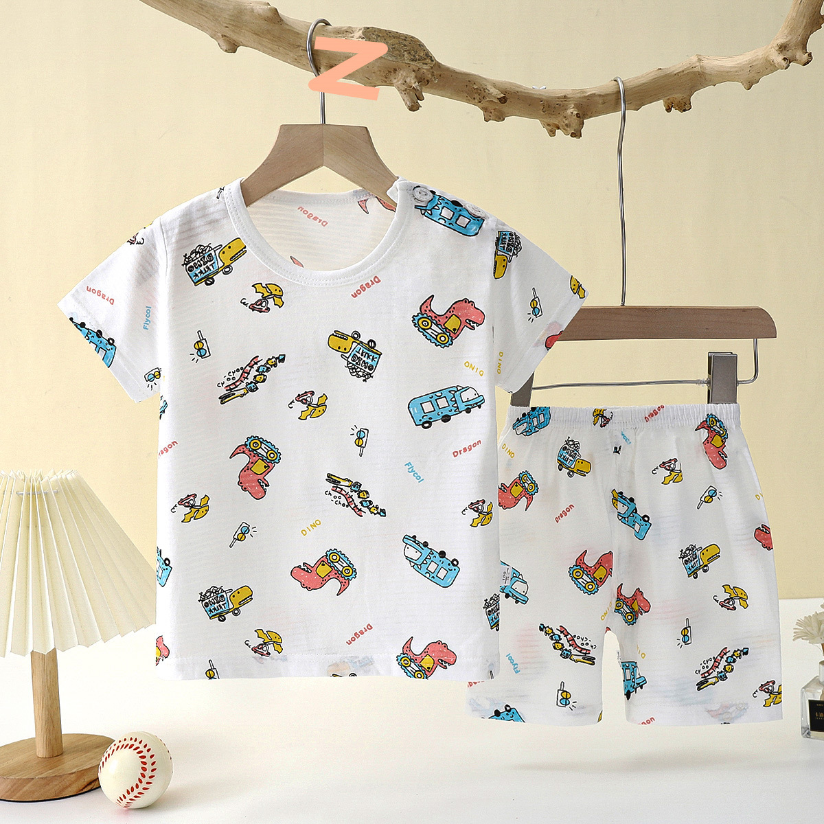 새로운 어린이 홈웨어 잠옷 여름 속옷 세트 속이 빈 얇은 에어컨 의류 소녀 투피스 세트스토어 가기