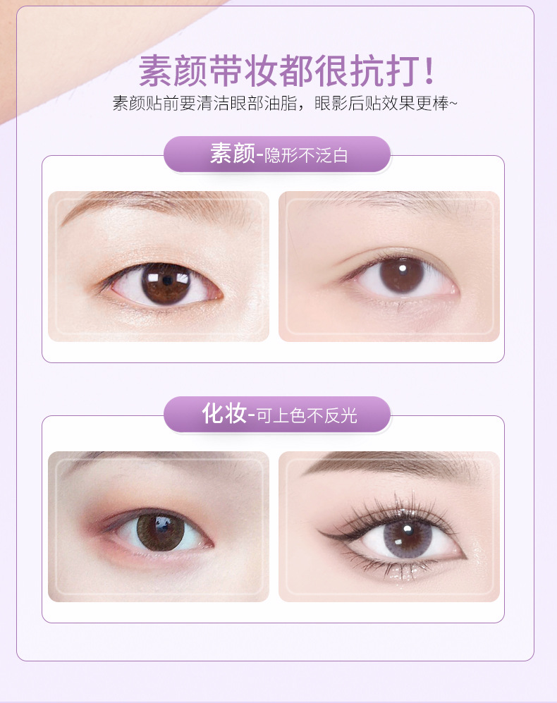 고급스러운 눈에 띄는 흔적 없는 쌍꺼풀 패치, 자연스럽게 피부에 붙어 오래 지속되는 접착력, 방수성, 땀 방지성, 사용하기 쉽고 보기에도 좋습니다.스토어 가기