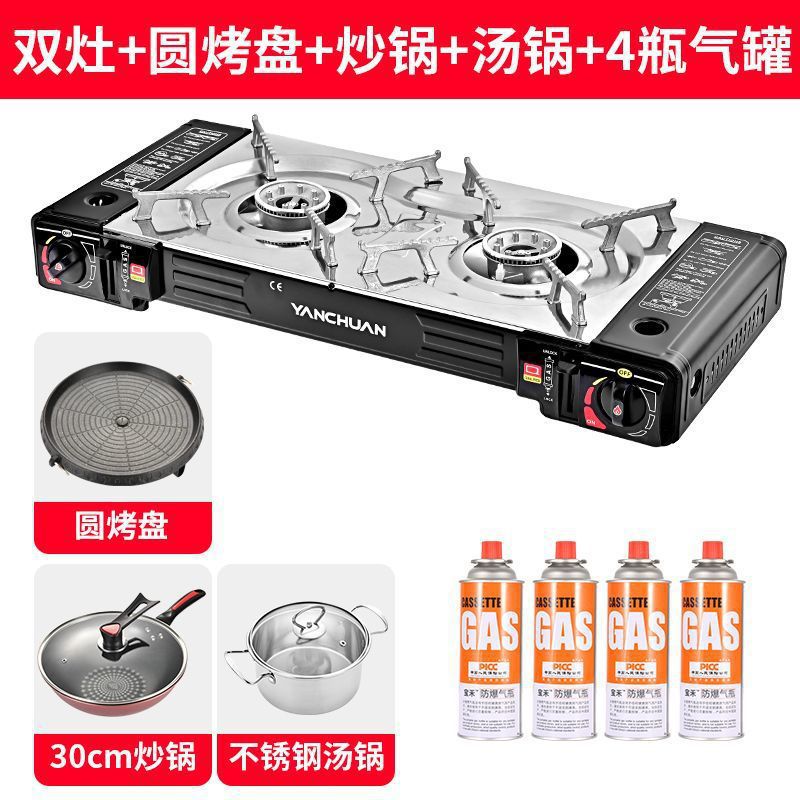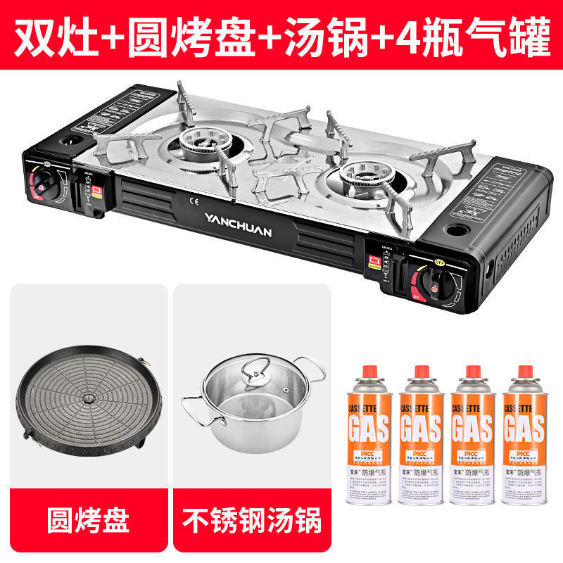 • 이중 스토브 + 원형 베이킹 팬 + 수프 냄비 + 가스 4병