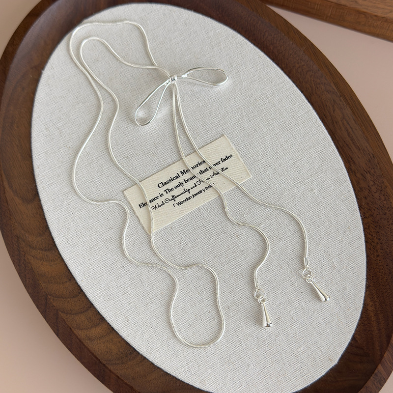 여성용 실버 보우 풀 아웃 목걸이, 심플한 콜드 스타일 롱 액세서리, 한국 스웨트 셔츠 체인, 쇄골 체인스토어 가기