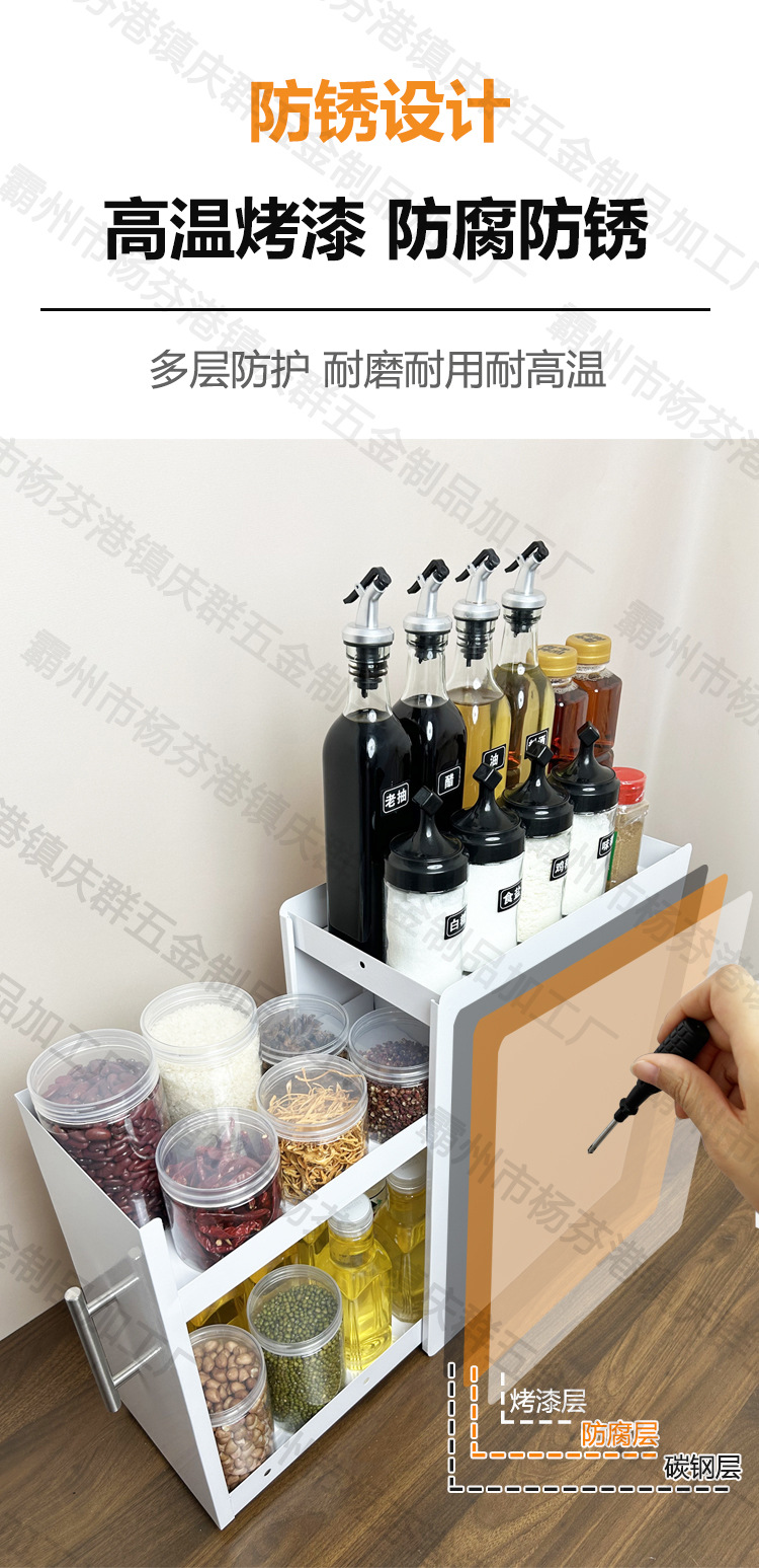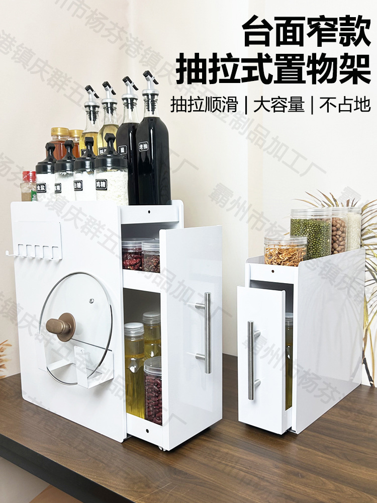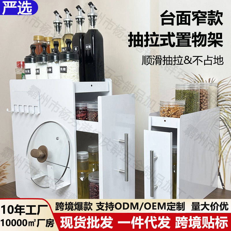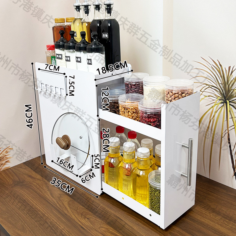 가정용 주방 좁은 조미료 랙 조리대 풀아웃 다층 방진 저장 오일 소금 소스 식초 조미료 저장 랙스토어 가기