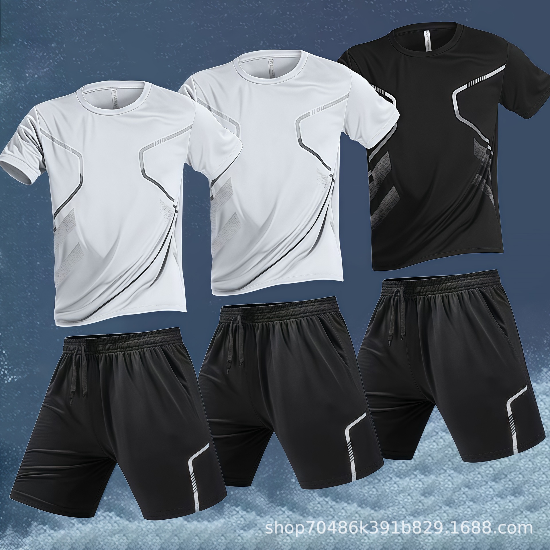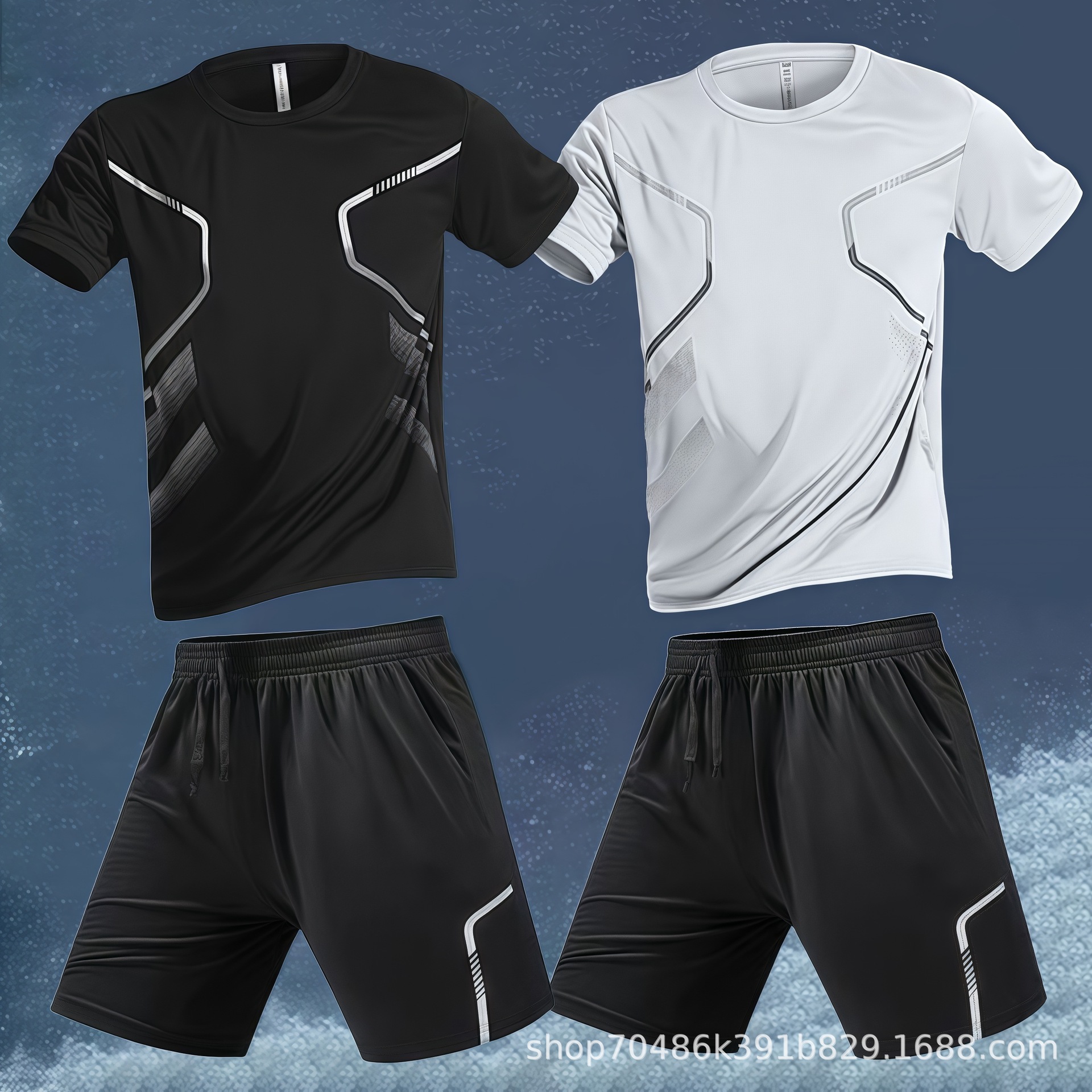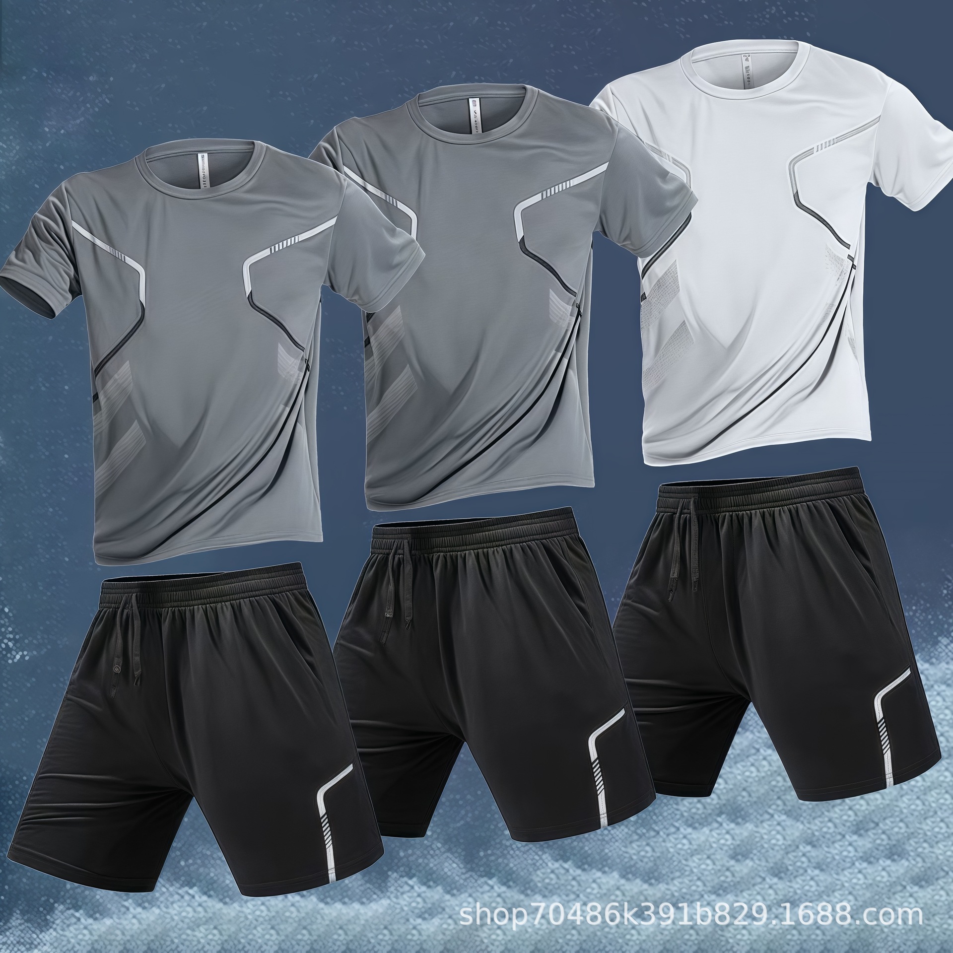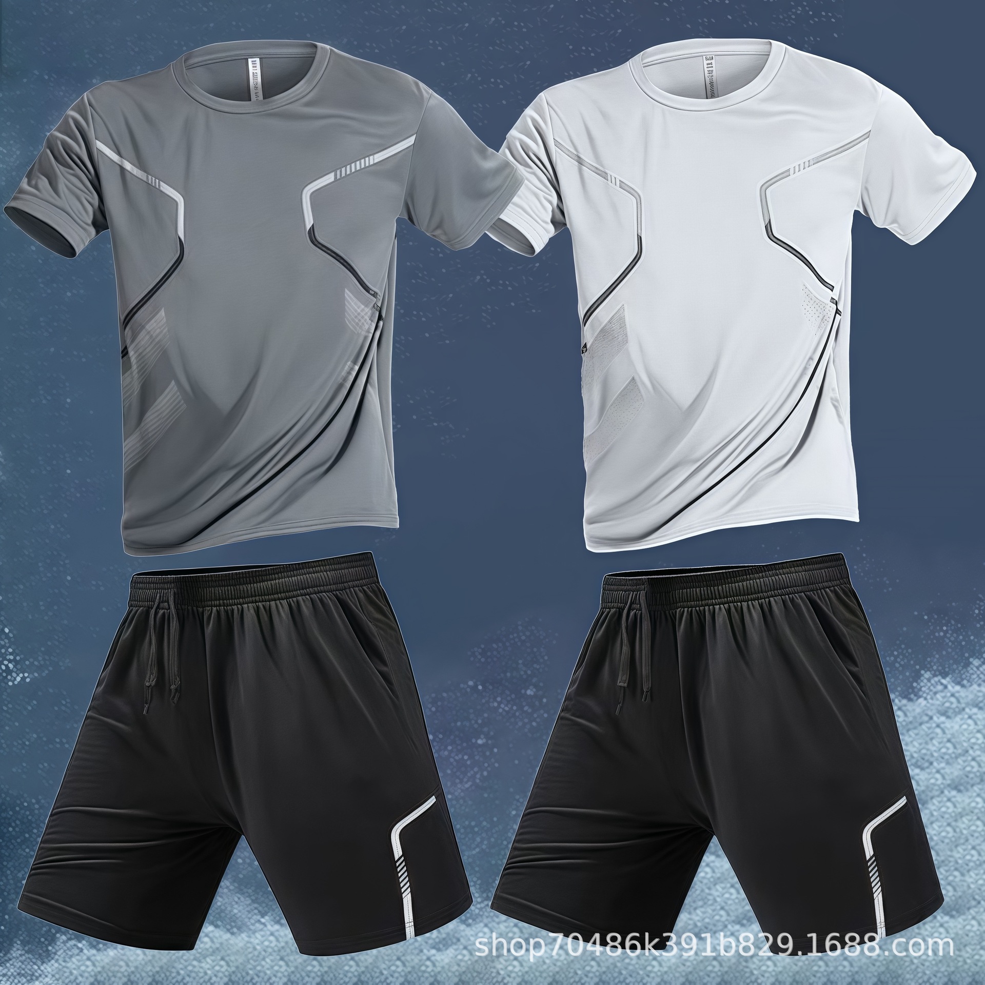 남성과 여성을위한 여름 속건성 메쉬 반팔 티셔츠 정장 스포츠 아이스 실크 저지 반바지 여름 배드민턴 투피스 세트스토어 가기