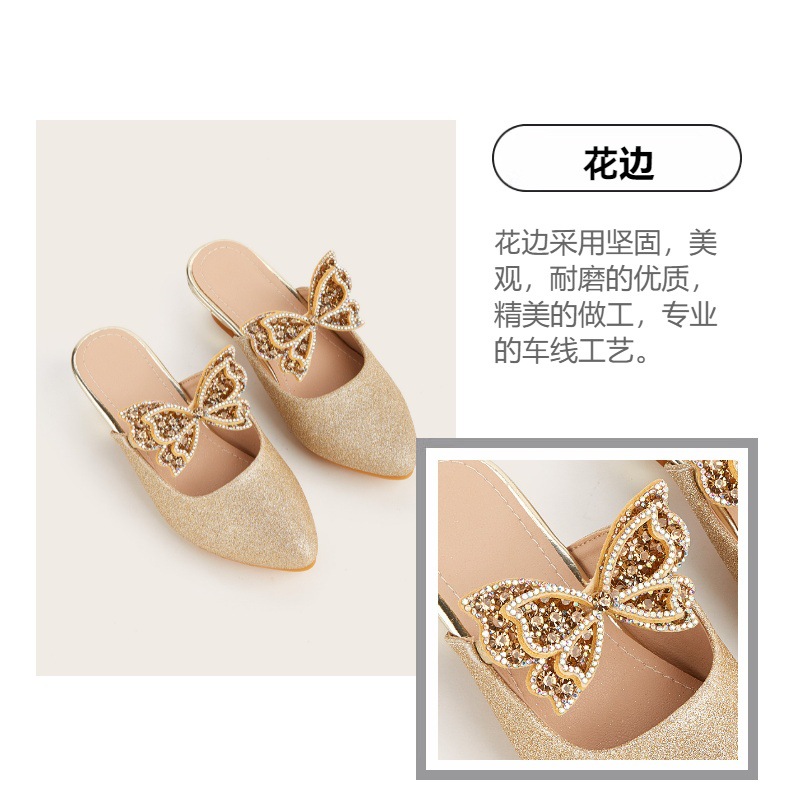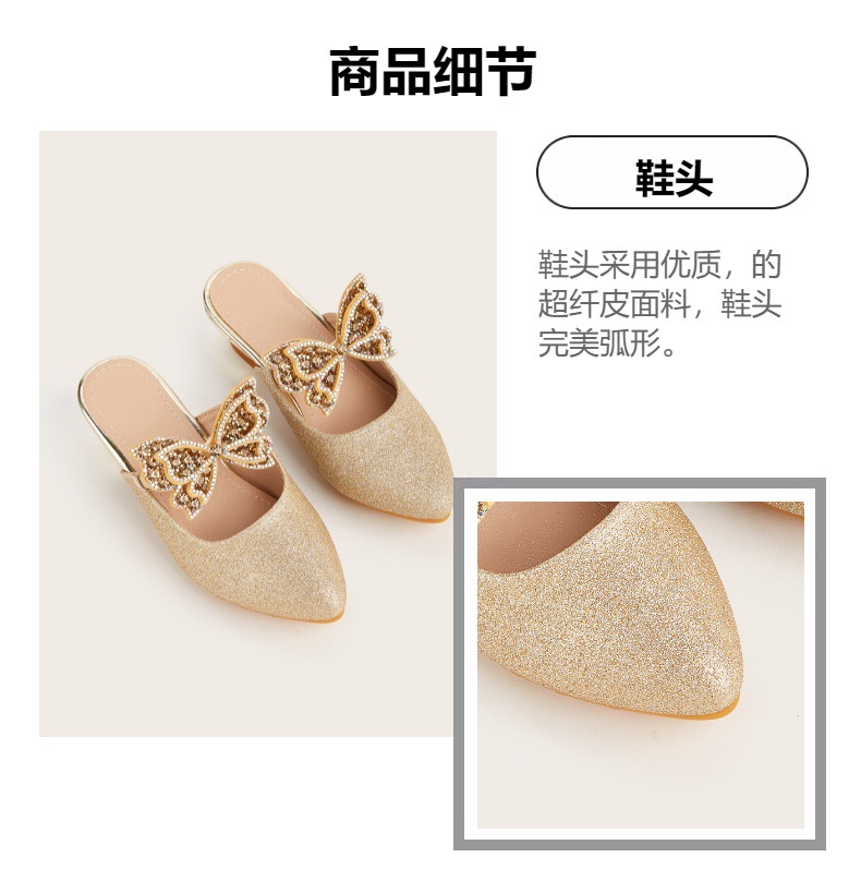 2026년 신상 여아용 더블 리본 하이힐 뾰족코 슬리퍼 우아하고 다재다능한 신상 파티용스토어 가기