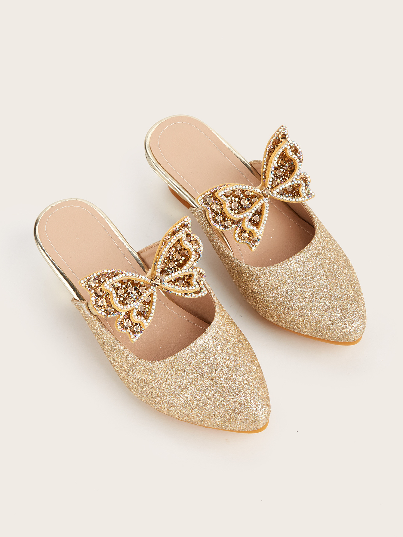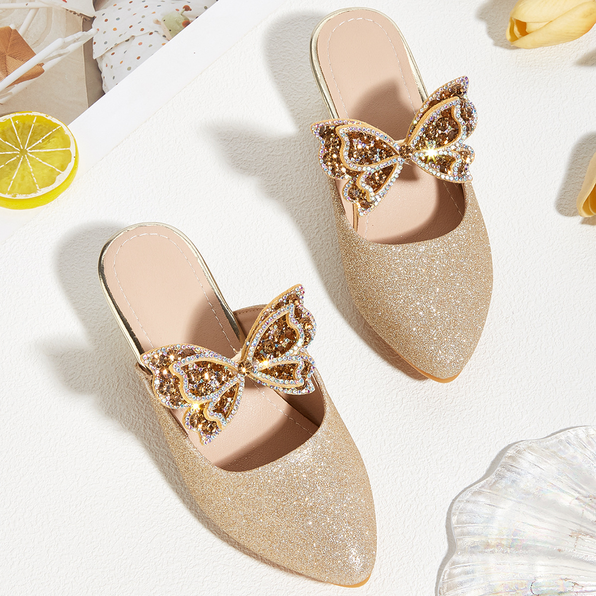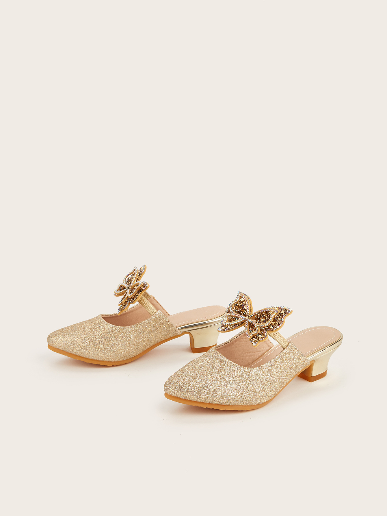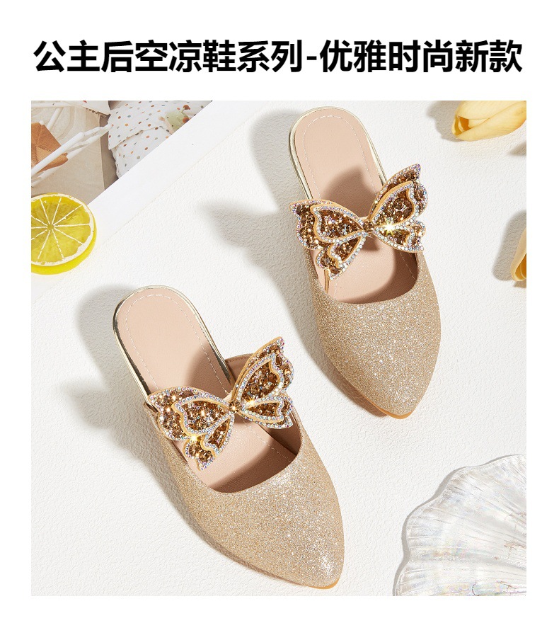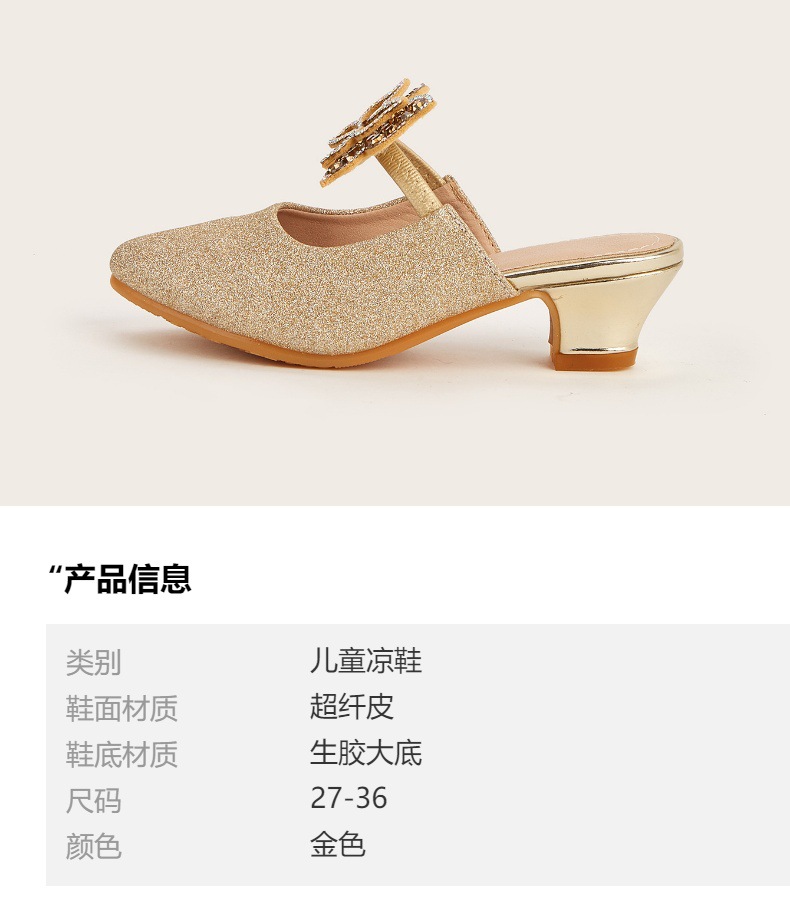 2026년 신상 여아용 더블 리본 하이힐 뾰족코 슬리퍼 우아하고 다재다능한 신상 파티용