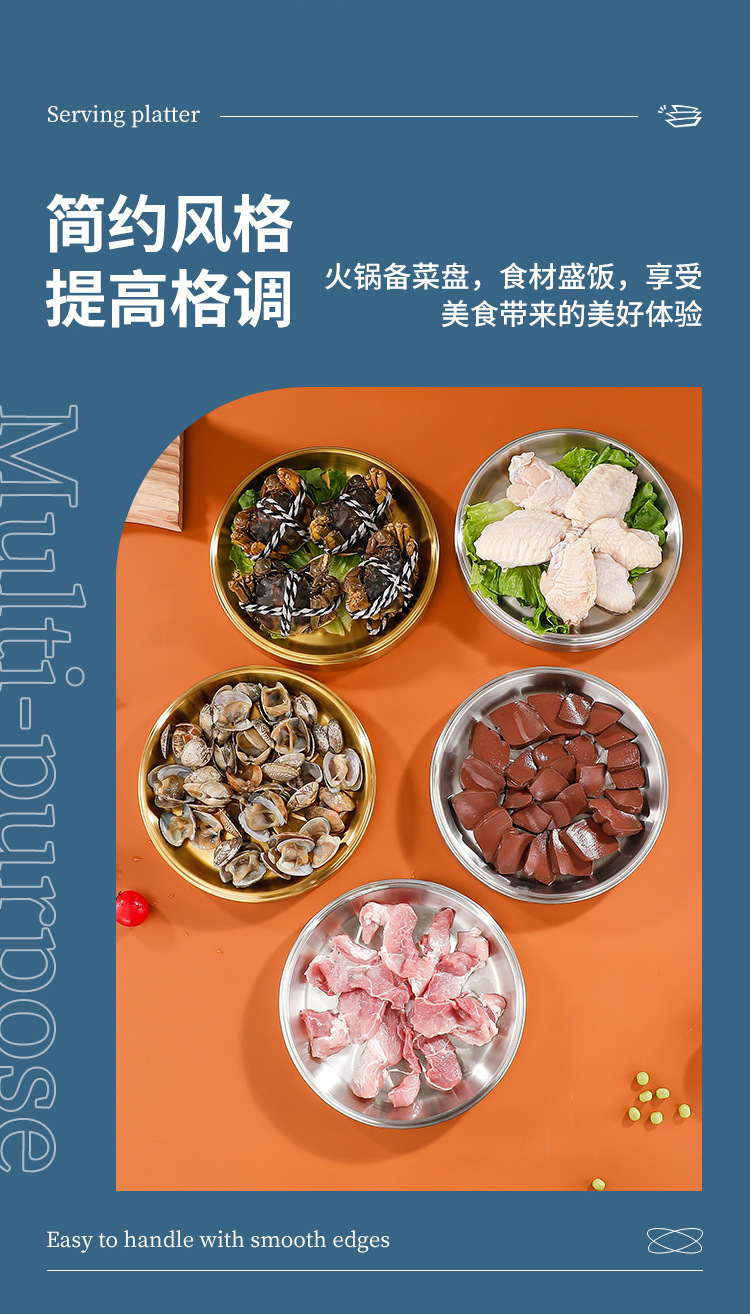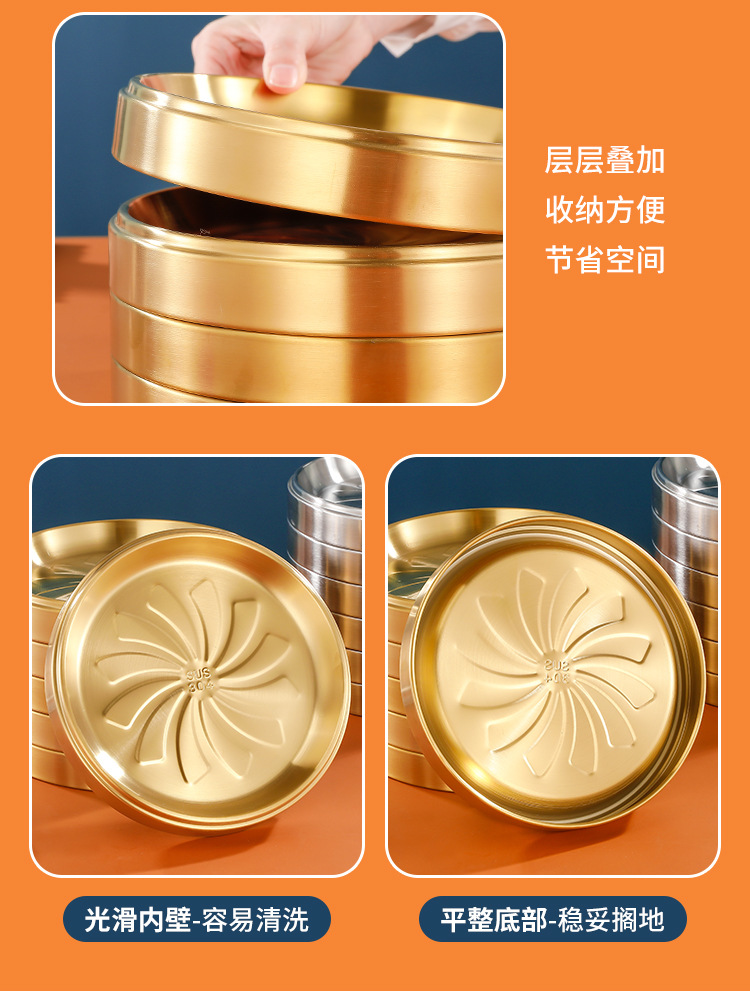 304 스테인레스 스틸 냄비 준비 접시 주방 황금 다층 반찬 접시 쌓을 수있는 바베큐 접시 두꺼운 보관 접시