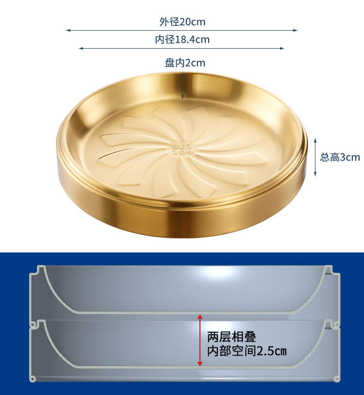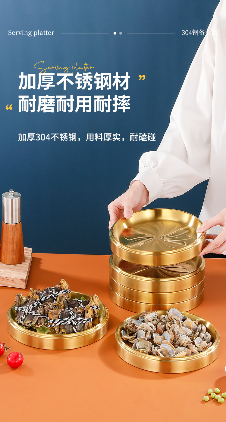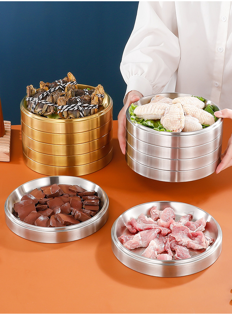 304 스테인레스 스틸 냄비 준비 접시 주방 황금 다층 반찬 접시 쌓을 수있는 바베큐 접시 두꺼운 보관 접시스토어 가기