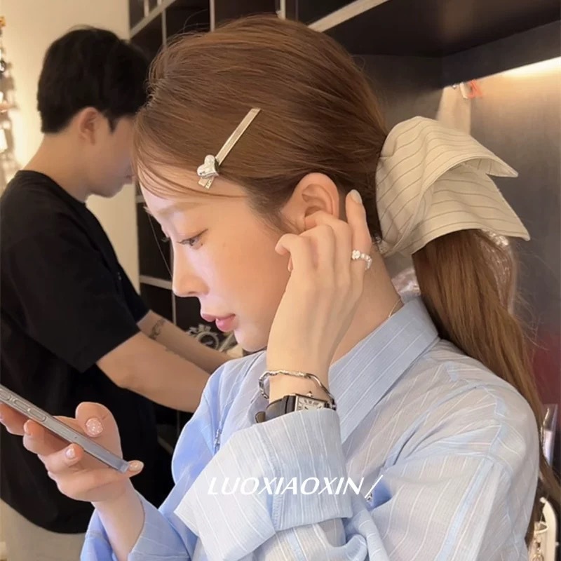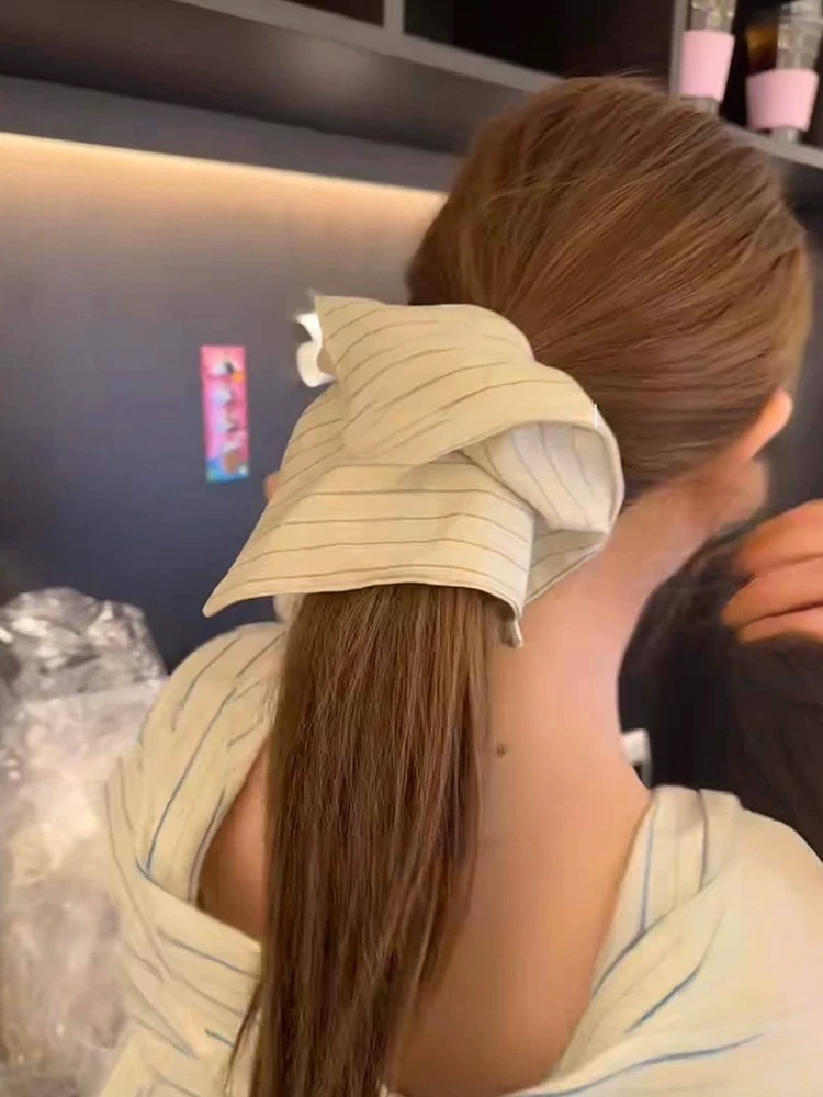 오니와 같은 줄무늬 여성용 머리끈, 고급스럽고 부드러운 스타일의 볼 헤어 액세서리, 뒷머리용 헤어 액세서리스토어 가기