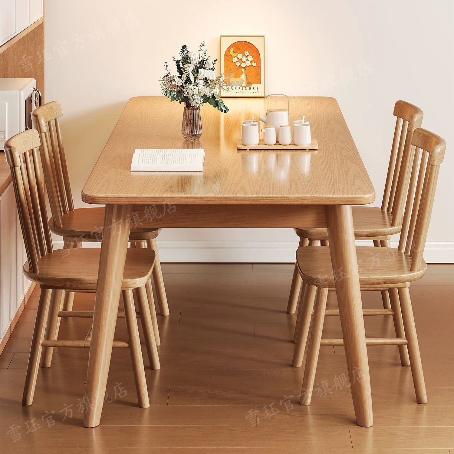 북유럽 단단한 나무 식탁 현대 가정용 직사각형 식탁 일본식 식탁과 의자 조합 작은 아파트 단순스토어 가기