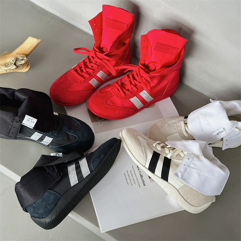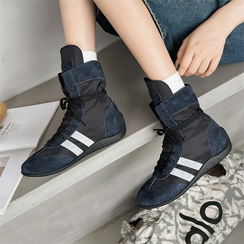여성을 위한 Dieao 복고풍 육군 훈련 신발 2025 내부 강화 부드러운 밑창 캐주얼 신발 세련되고 다재다능한 캐주얼 하이탑 복싱 신발 트렌드스토어 가기