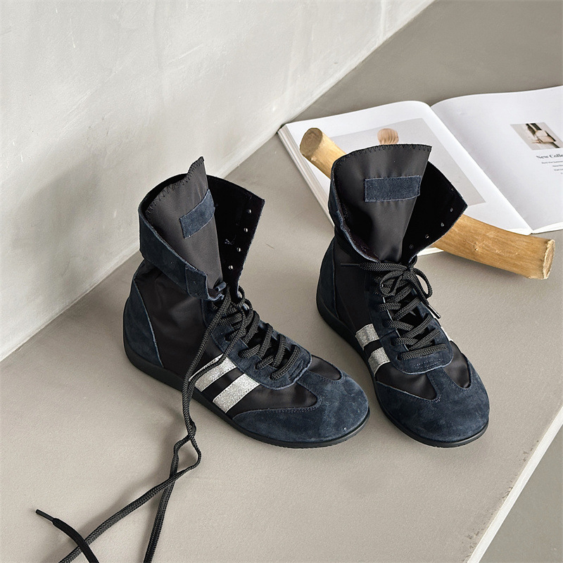 여성을 위한 Dieao 복고풍 육군 훈련 신발 2025 내부 강화 부드러운 밑창 캐주얼 신발 세련되고 다재다능한 캐주얼 하이탑 복싱 신발 트렌드