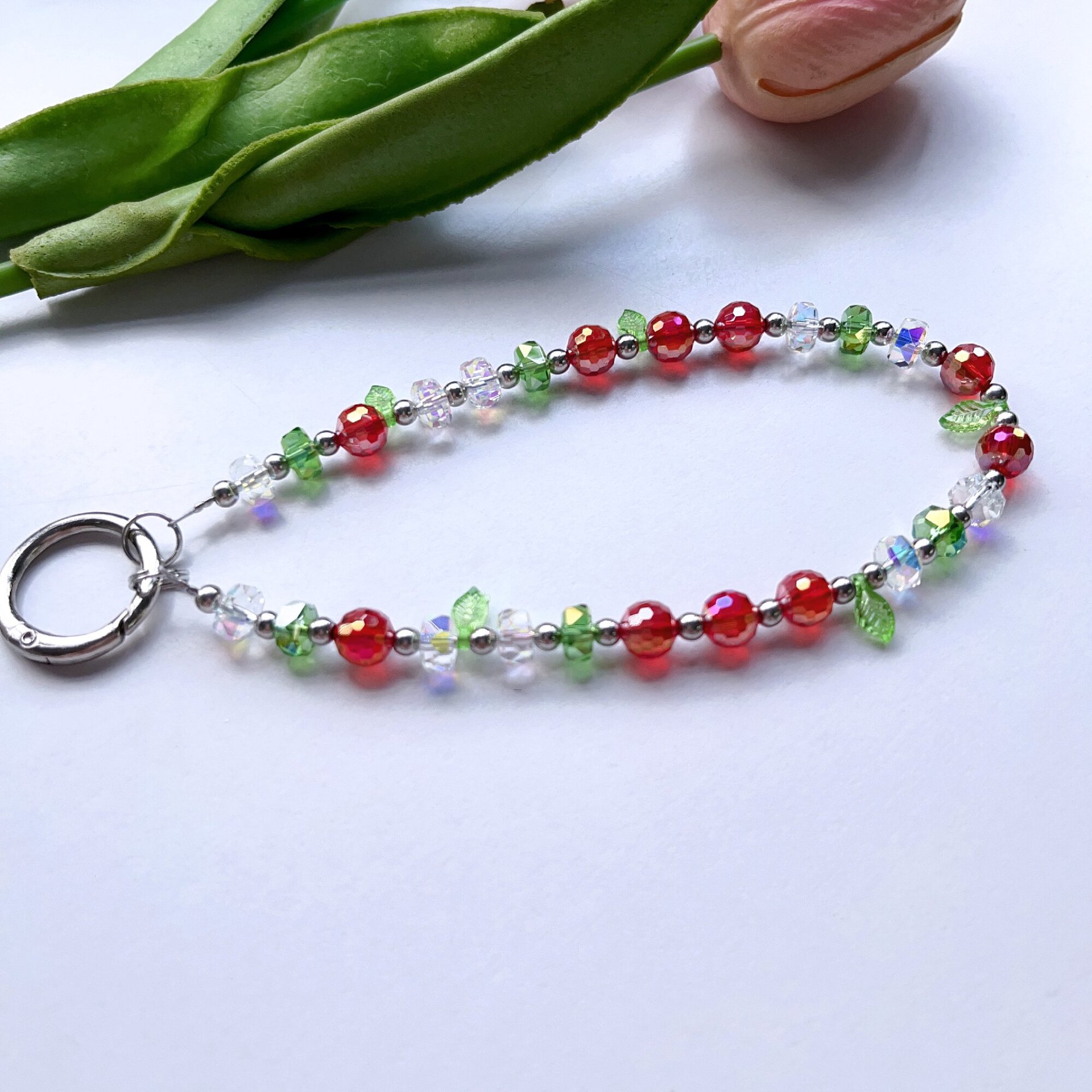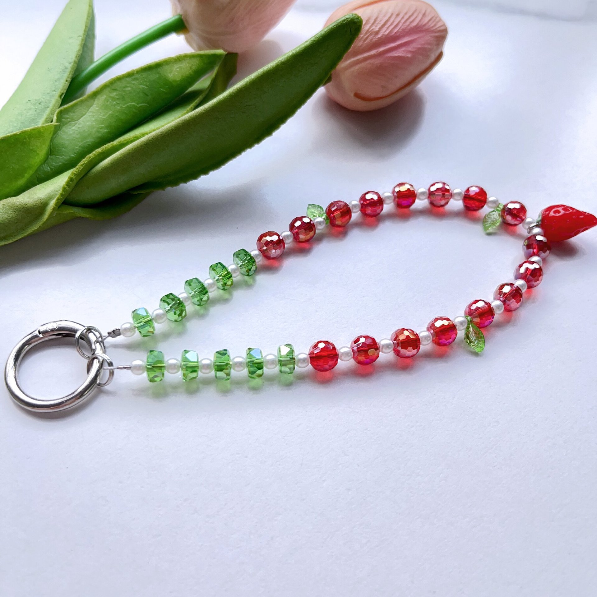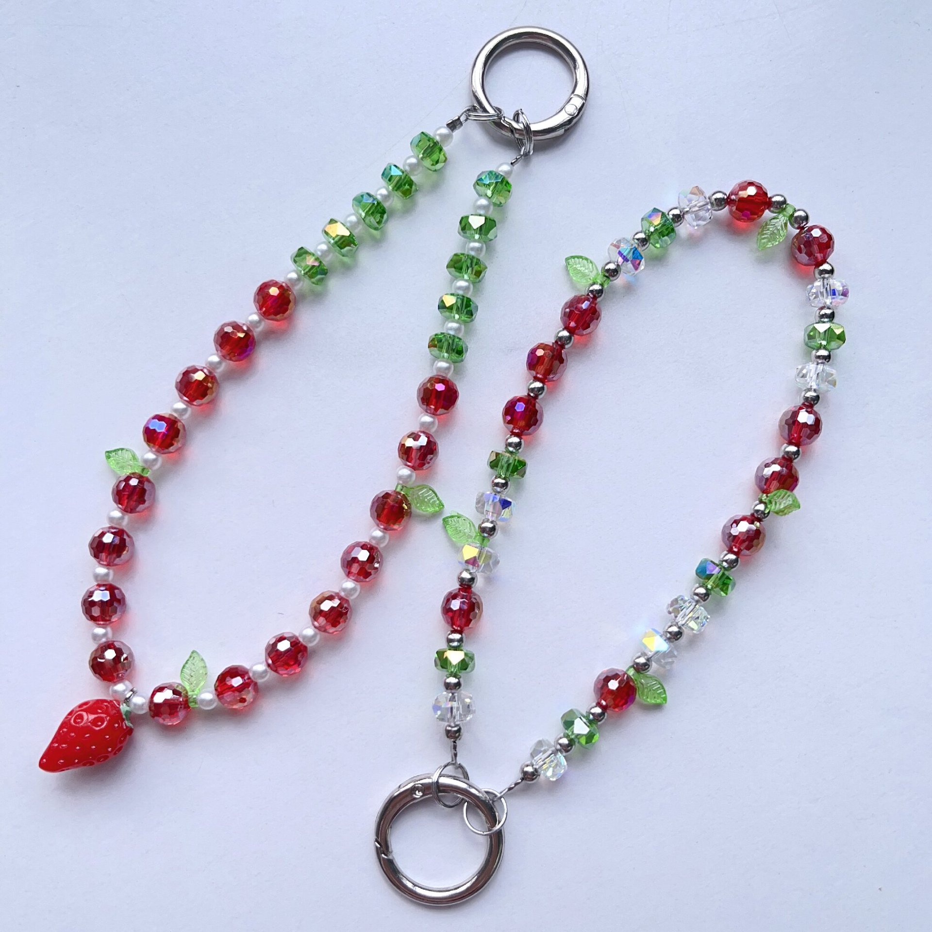 딸기 크리스탈 녹색 잎 휴대 전화 체인 페르시 휴대 전화 펜던트 액세서리 휴대 전화 케이스 키 체인 펜던트 가방 펜던트