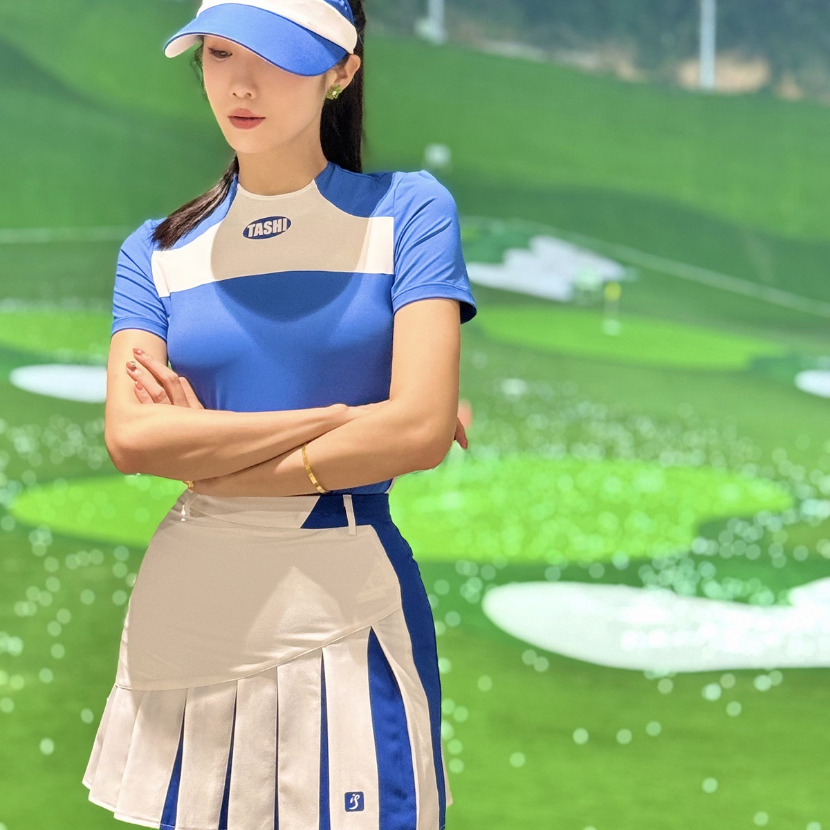 TASHI GOLF 속건성 스트레치 반팔 탑 골프 여성 여름 골프 의류 여성 짧은 치마 바지스토어 가기