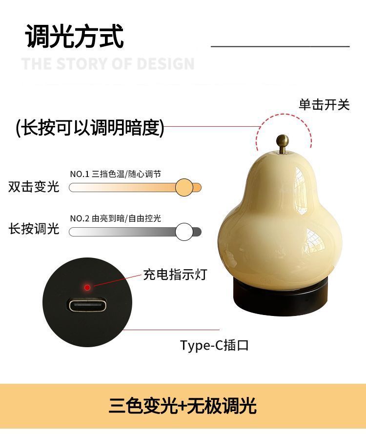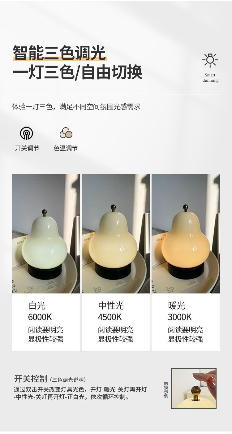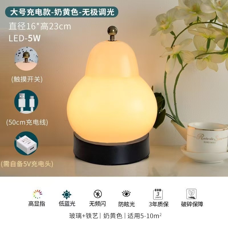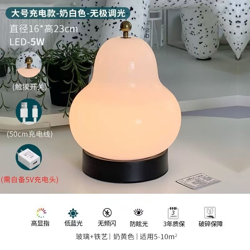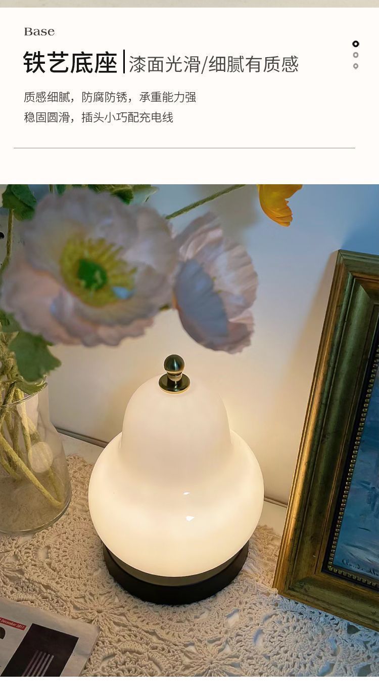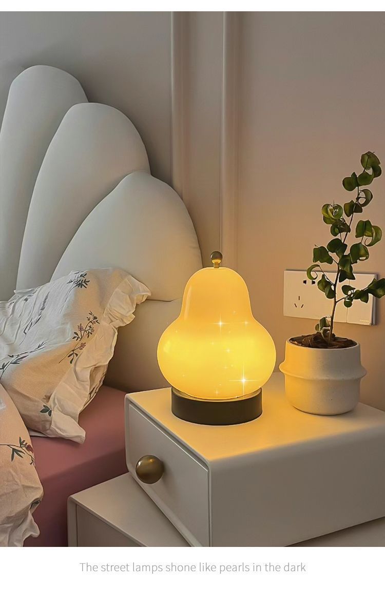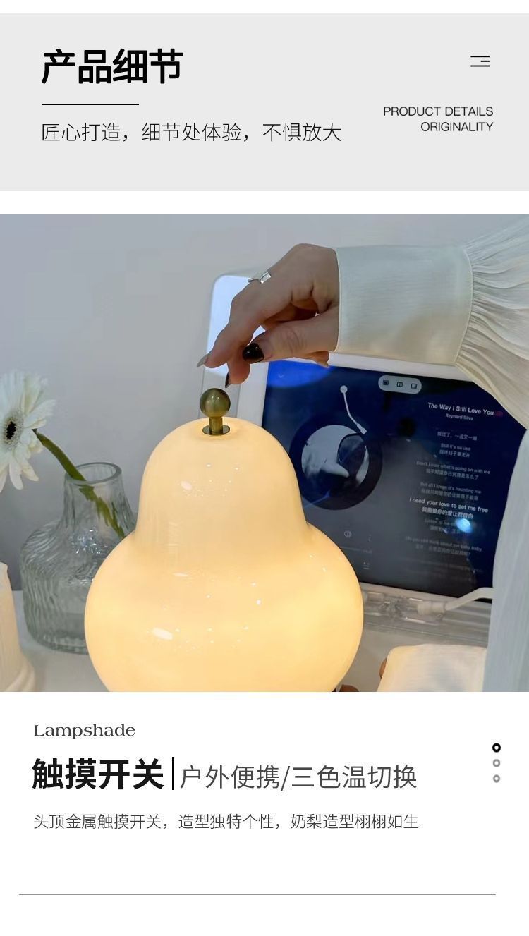 크림 배 테이블 램프 인터넷 연예인 하이 엔드 중세 스타일 침실 머리맡 램프 유리 충전식 터치 휴대용 야간 조명