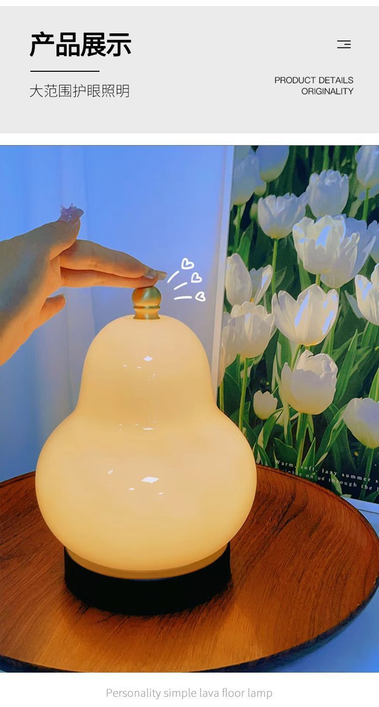 크림 배 테이블 램프 인터넷 연예인 하이 엔드 중세 스타일 침실 머리맡 램프 유리 충전식 터치 휴대용 야간 조명스토어 가기