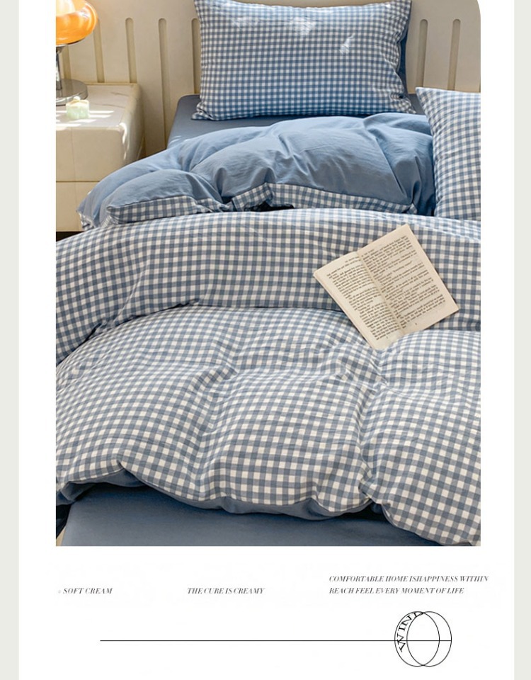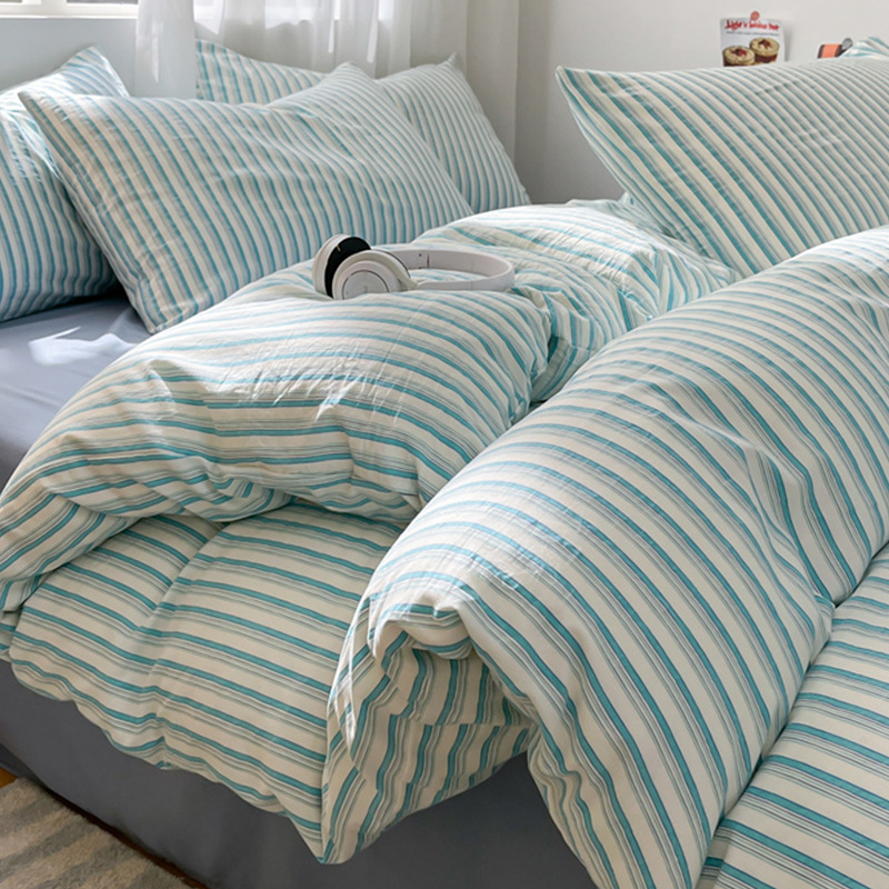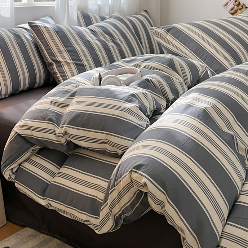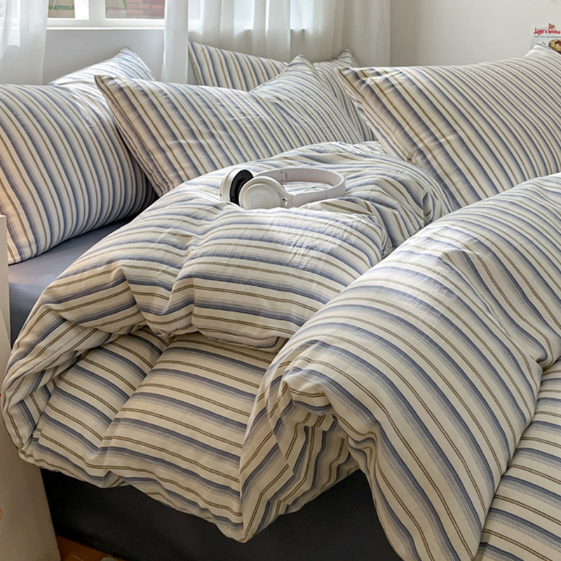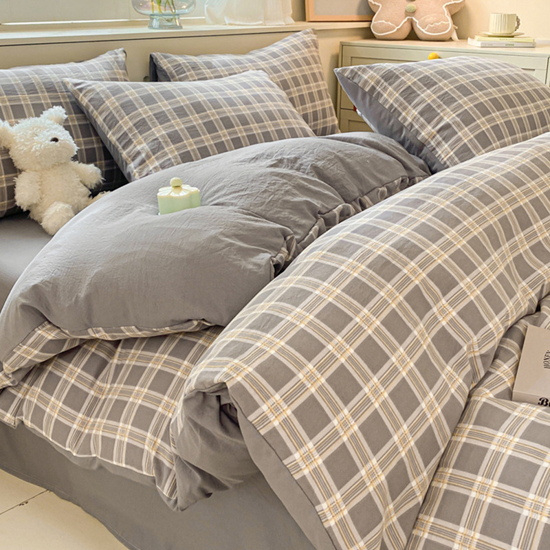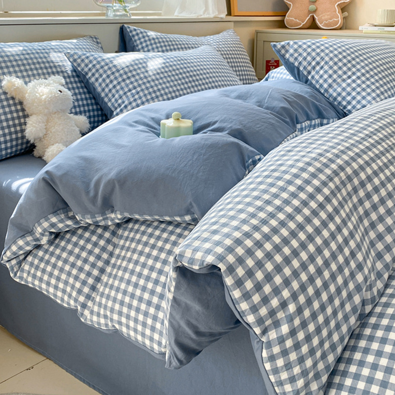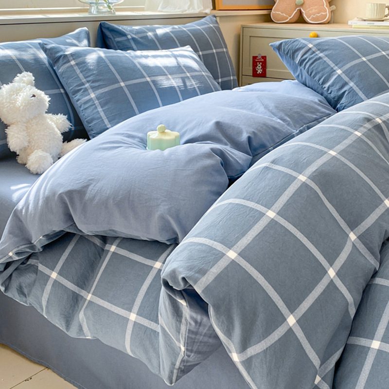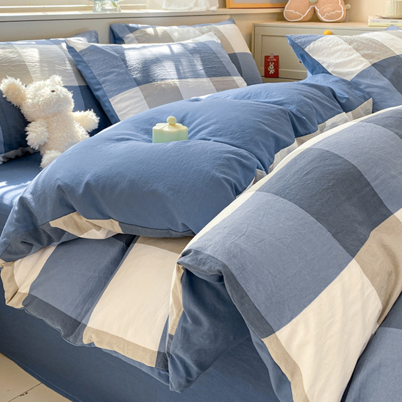 무인쇄풍 워싱면 침대 4종세트 심플 체크무늬 침대시트 이불커버 스트라이프 침구 기숙사 3종세트