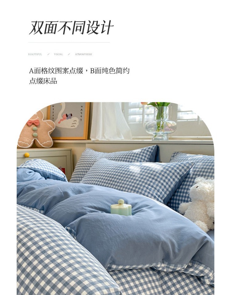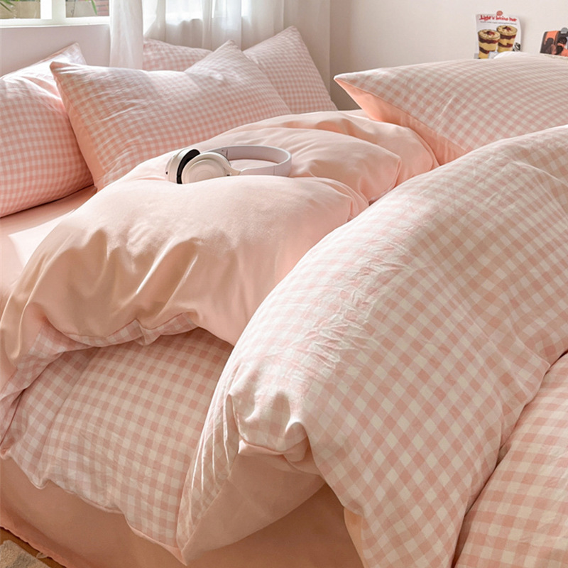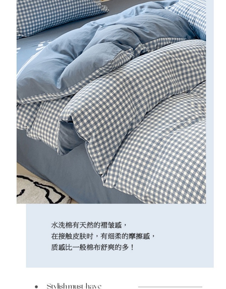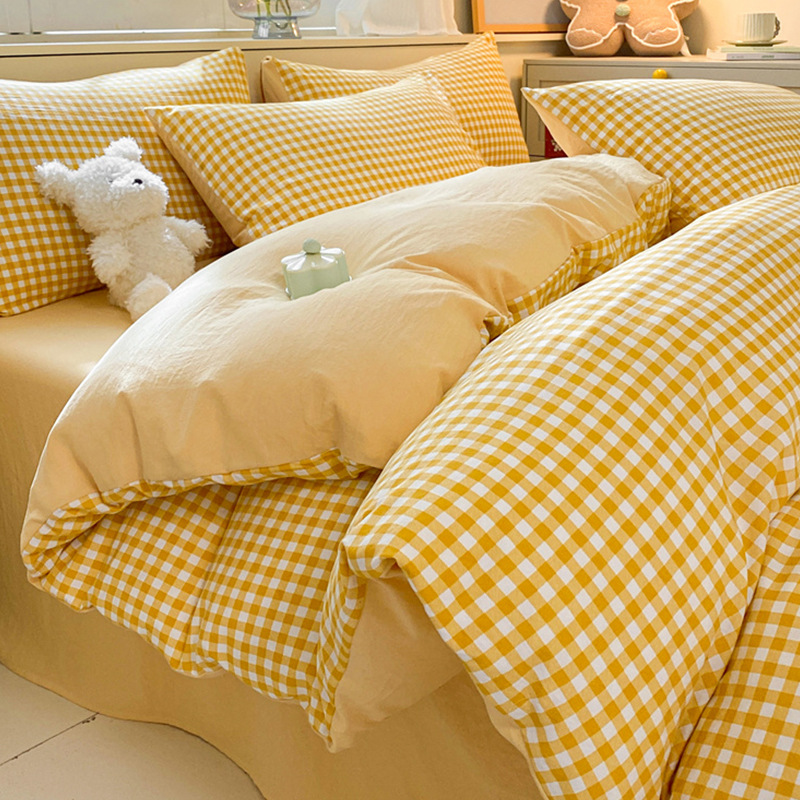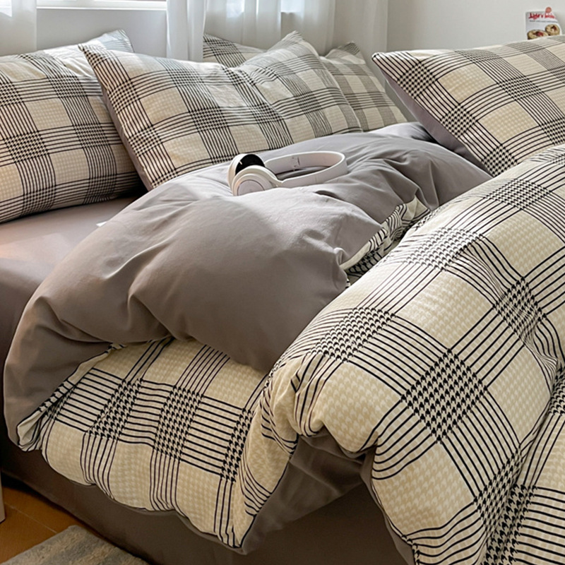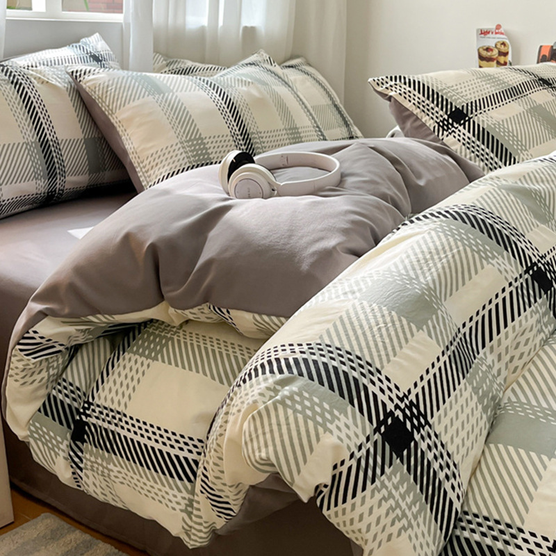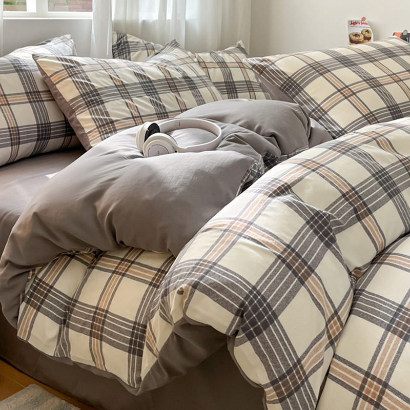무인쇄풍 워싱면 침대 4종세트 심플 체크무늬 침대시트 이불커버 스트라이프 침구 기숙사 3종세트