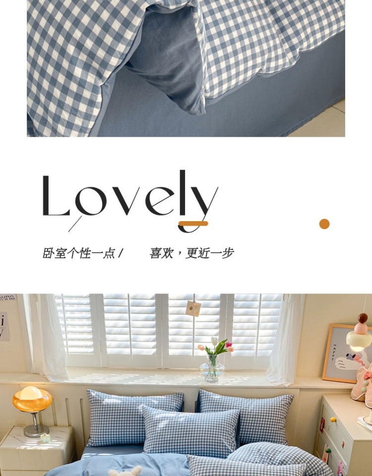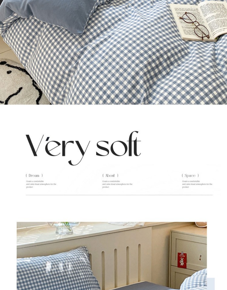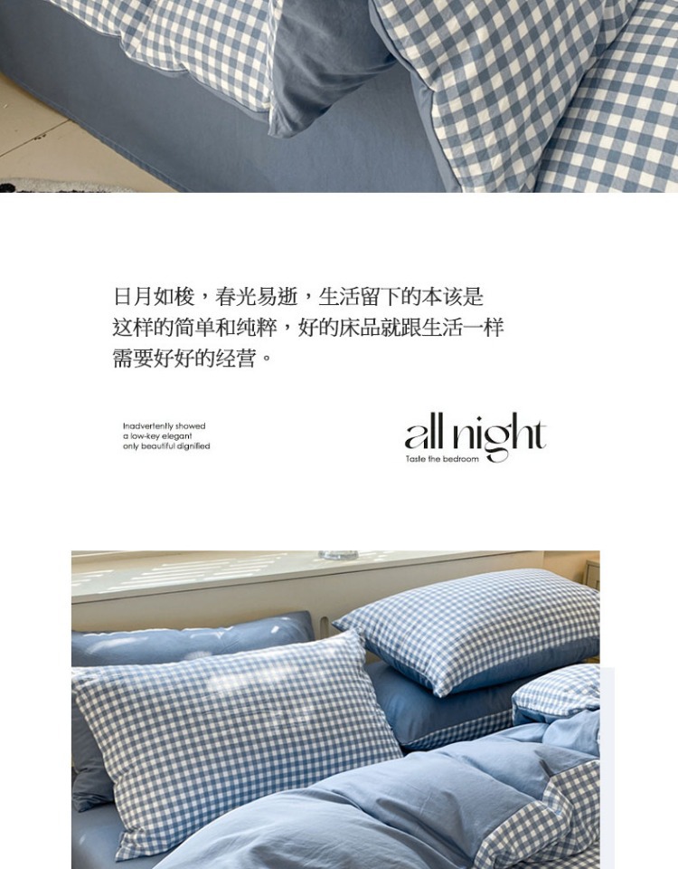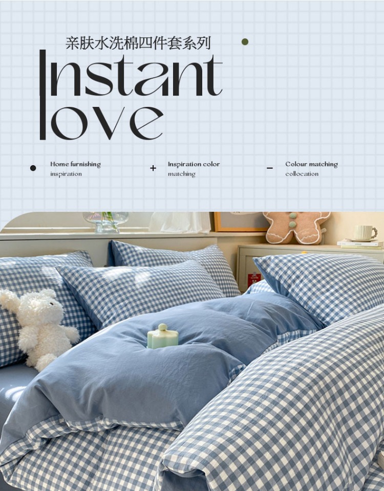 무인쇄풍 워싱면 침대 4종세트 심플 체크무늬 침대시트 이불커버 스트라이프 침구 기숙사 3종세트스토어 가기