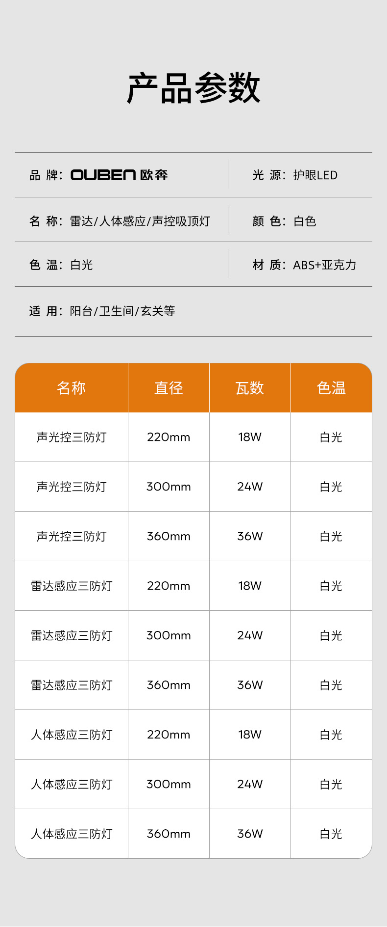 • Tri-proof 조명(백색)-레이더 유도 36W 백색광
