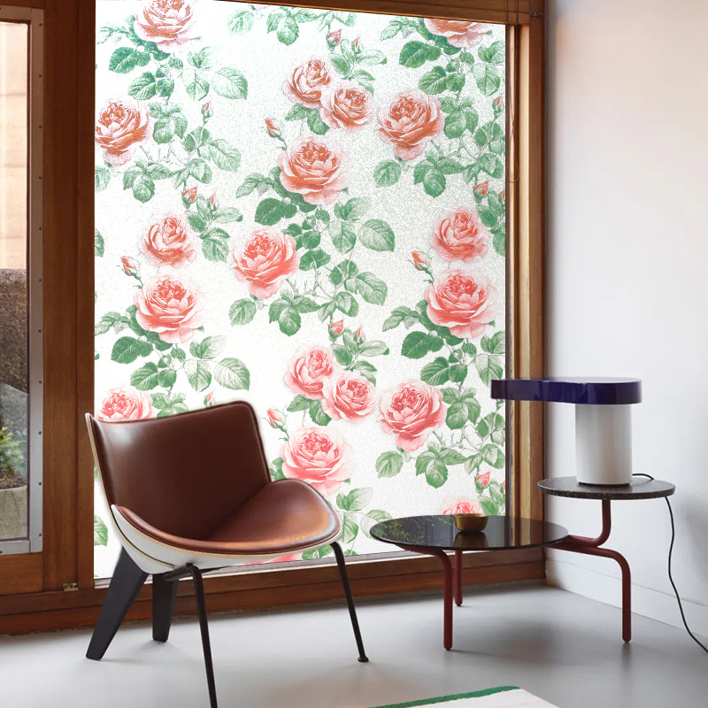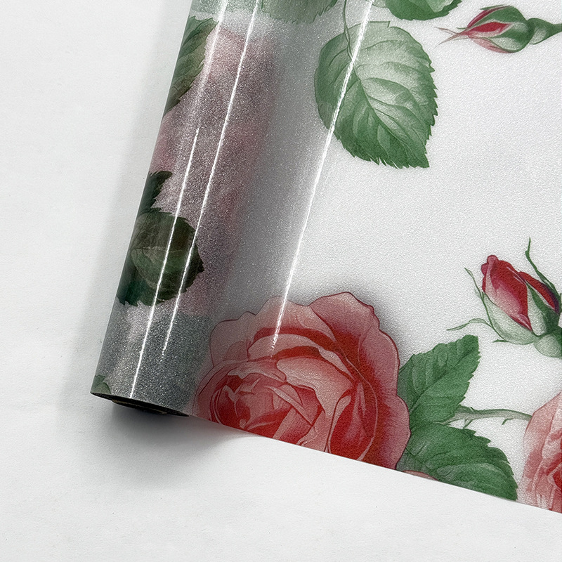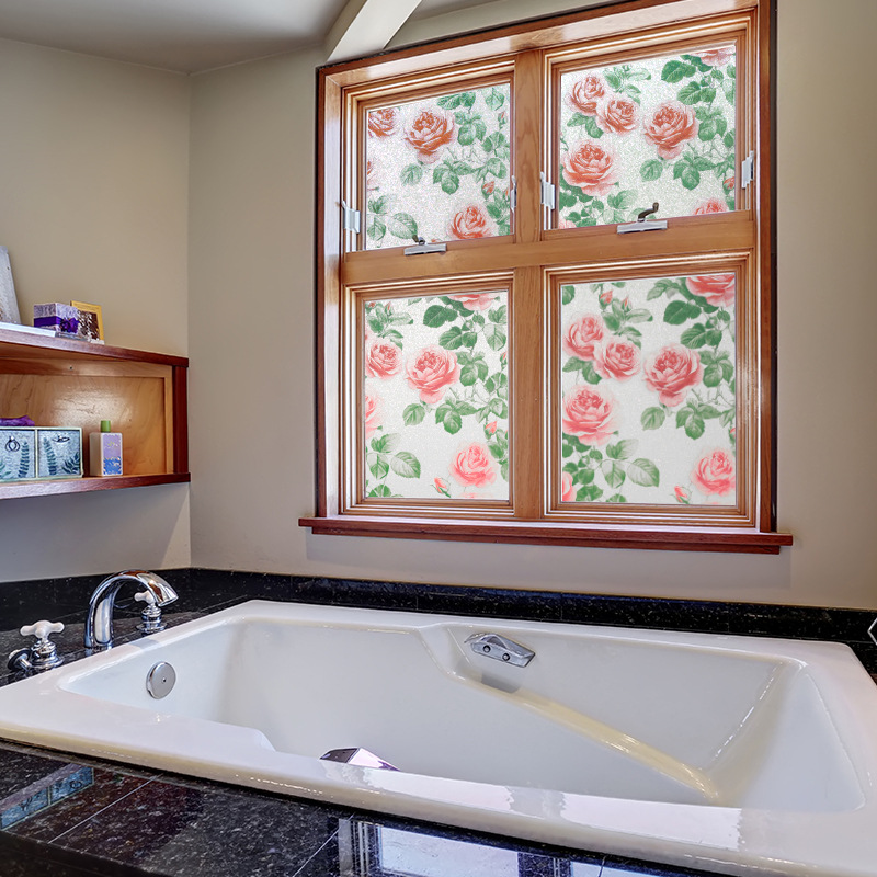 정전기 YYP 레드 로즈 유리 스티커 필름 페인트 유리 레이저 창 프라이버시 필름 광 투과 창 스티커스토어 가기